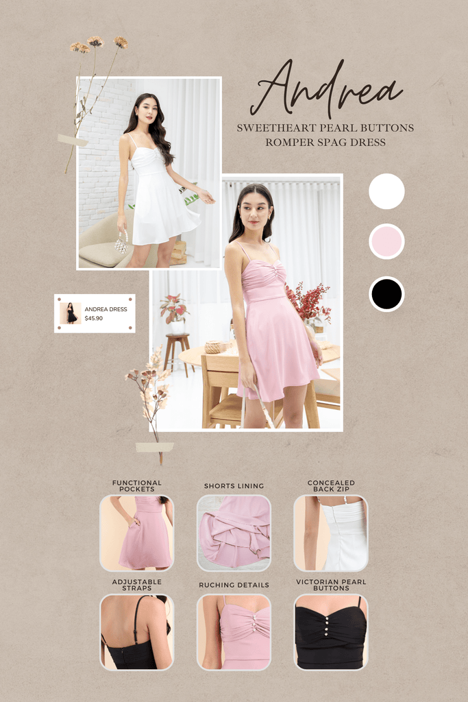 Featuring gorgeous Victorian pearl buttons, a ruched bust and a sweetheart neckline, this romper dress screams luxe and elegant! Andrea is the perfect outfit to slay in for the upcoming festive season. With a pair of heels and a baguette bag, you’ll be the prettiest view of the night!