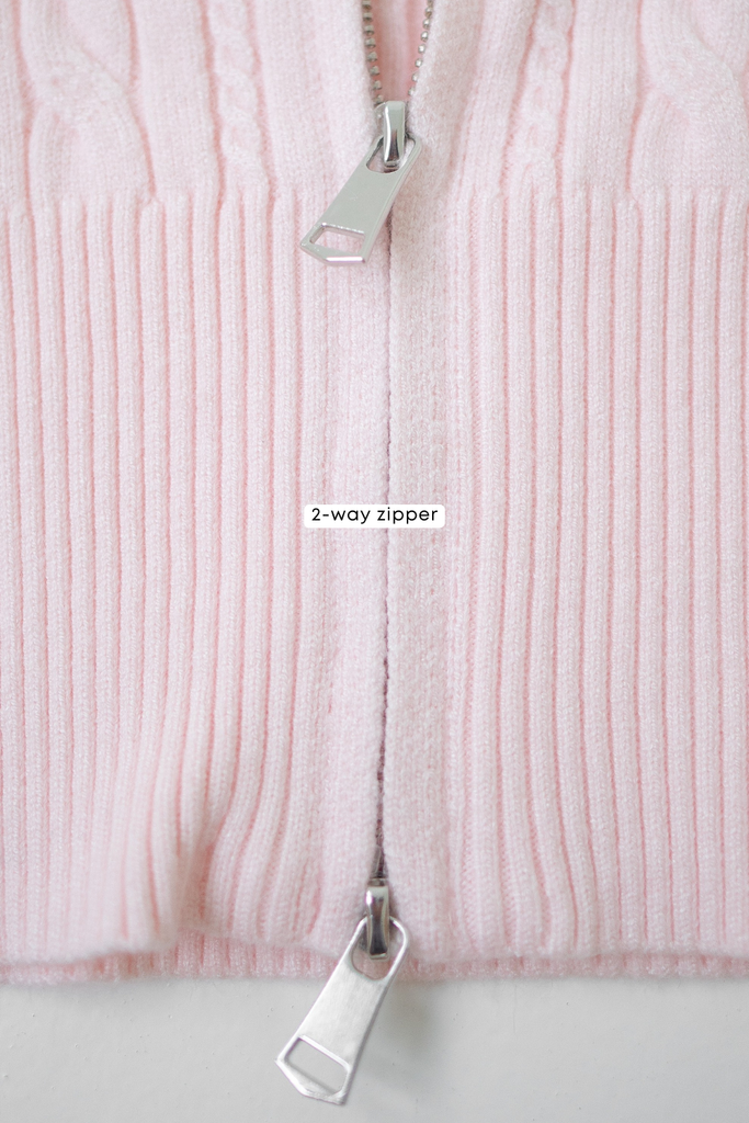 Calista is a cozy yet stylish layering piece featuring a front zipper closure for a modern twist on a classic knit. Made from soft, breathable fabric, it offers a snug and comfortable fit perfect for any season. Its clean lines and timeless design make it an easy match for both casual and polished looks.