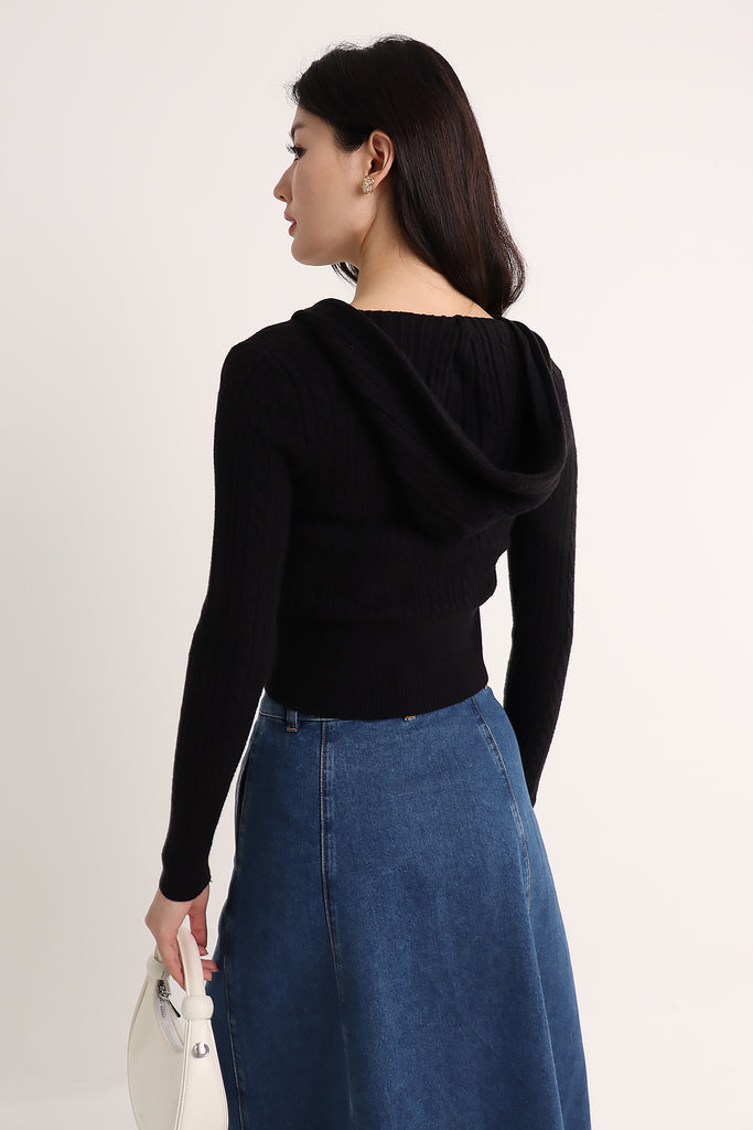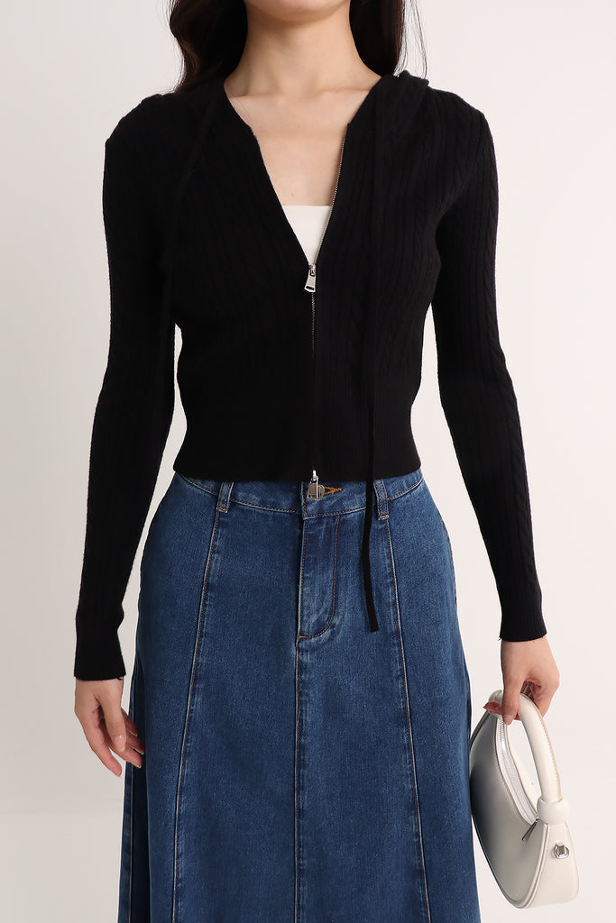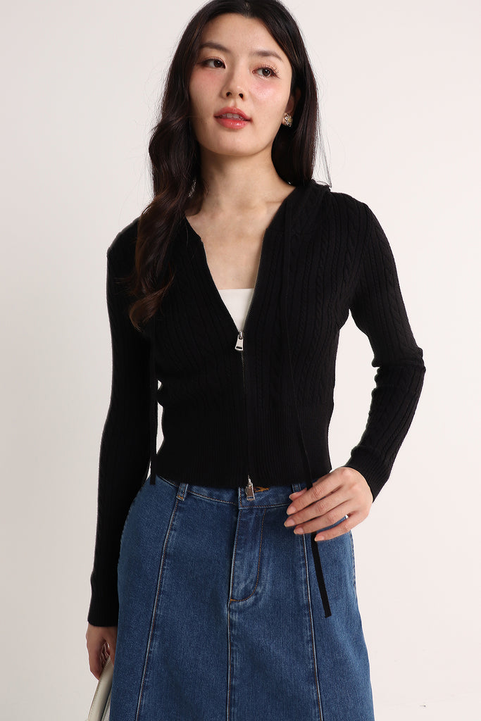 CALISTA KNIT ZIPPER CARDIGAN IN BLACK