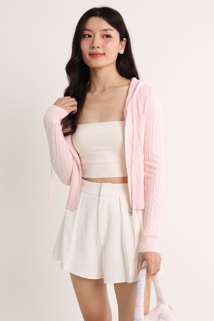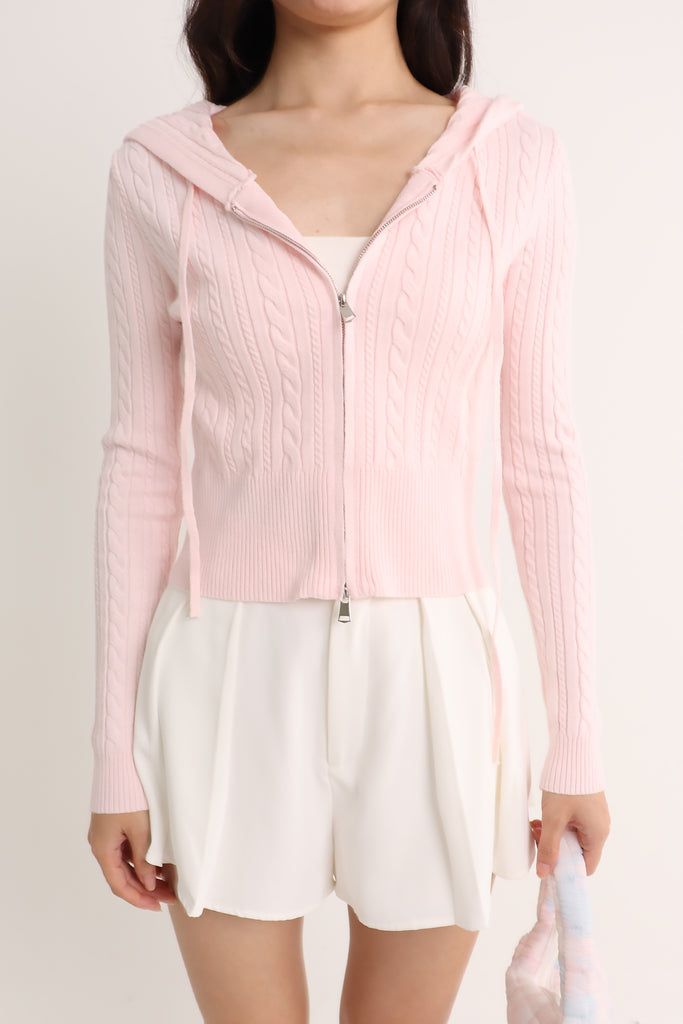 CALISTA KNIT ZIPPER CARDIGAN IN PINK