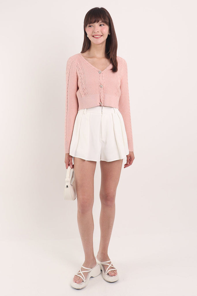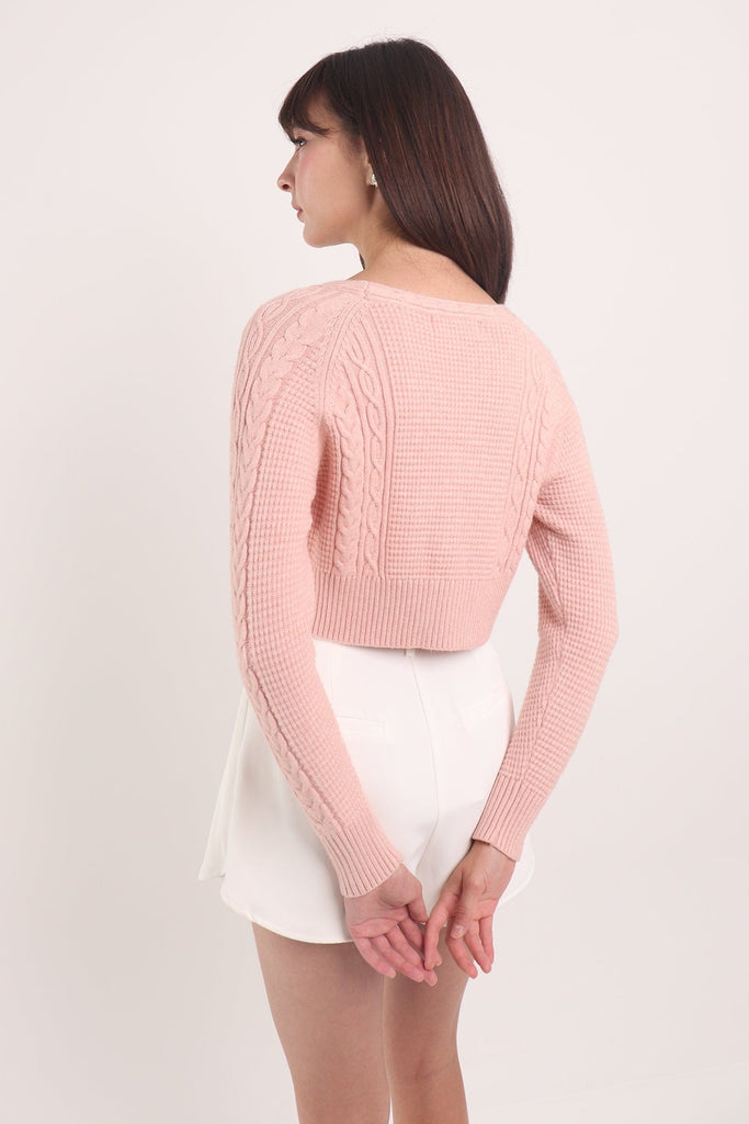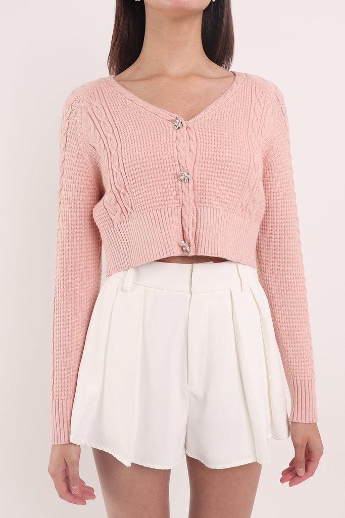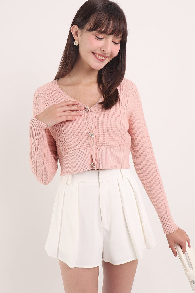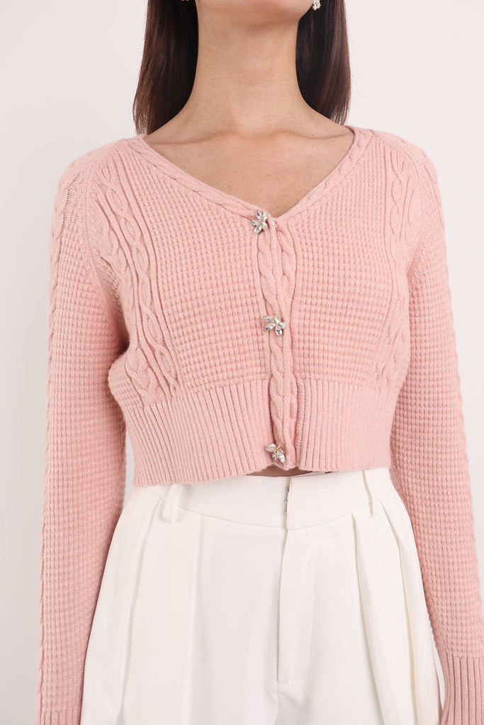 DANIELLE WEAVED CARDIGAN IN CHAMPAGNE PINK