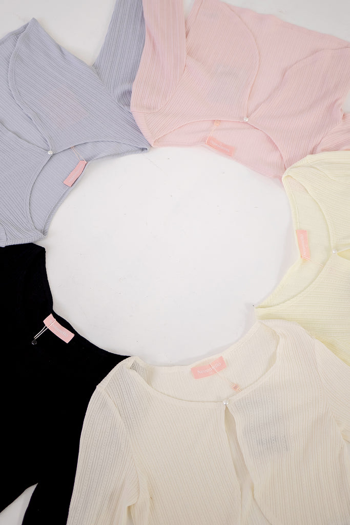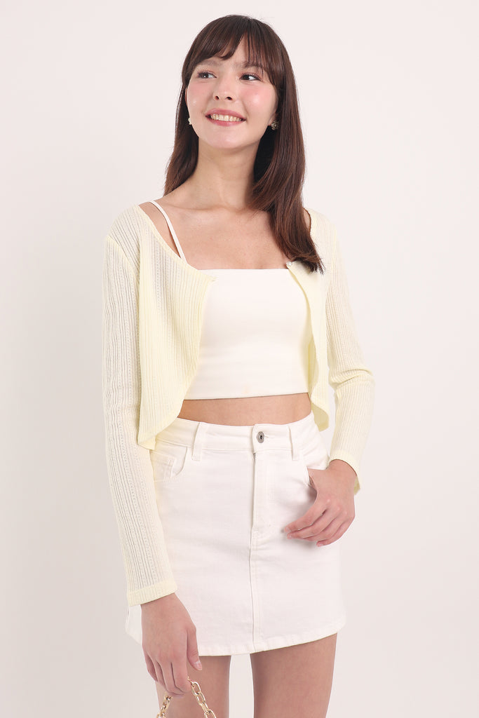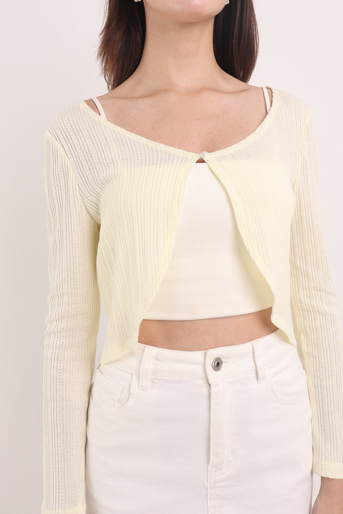 ELLIORA PRINCESS PEARL CARDIGAN IN LEMON CHIFFON