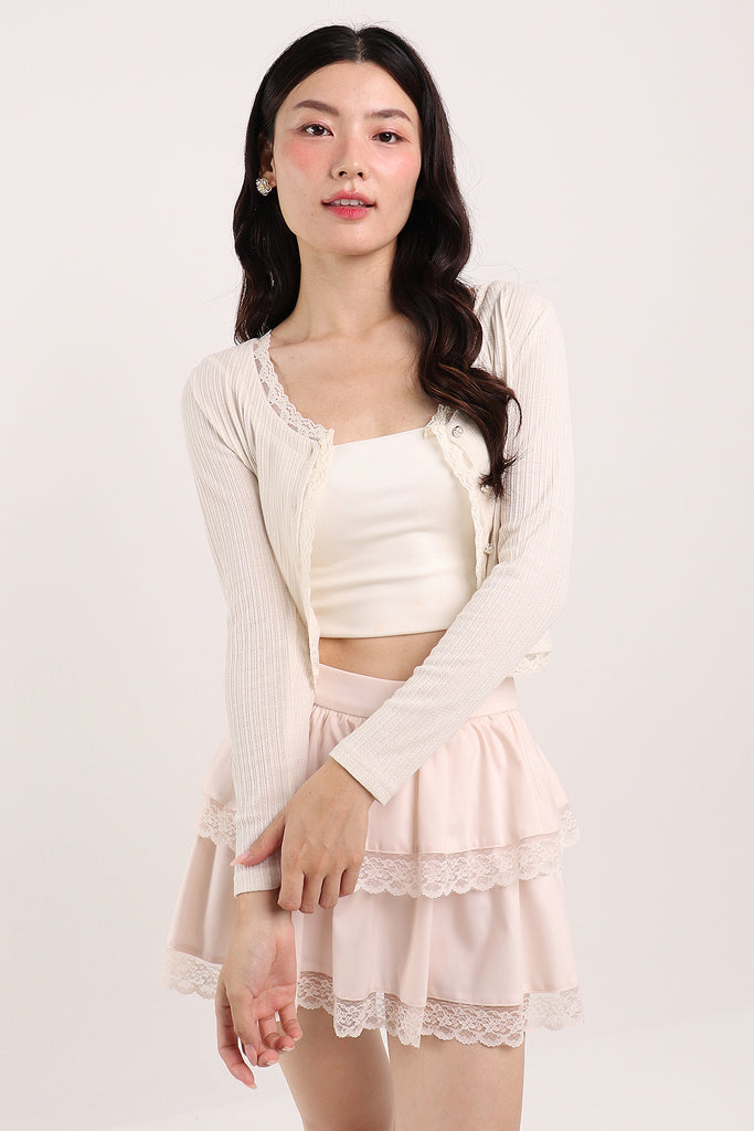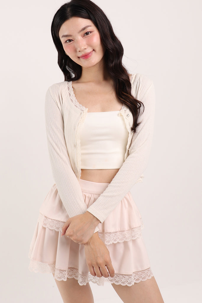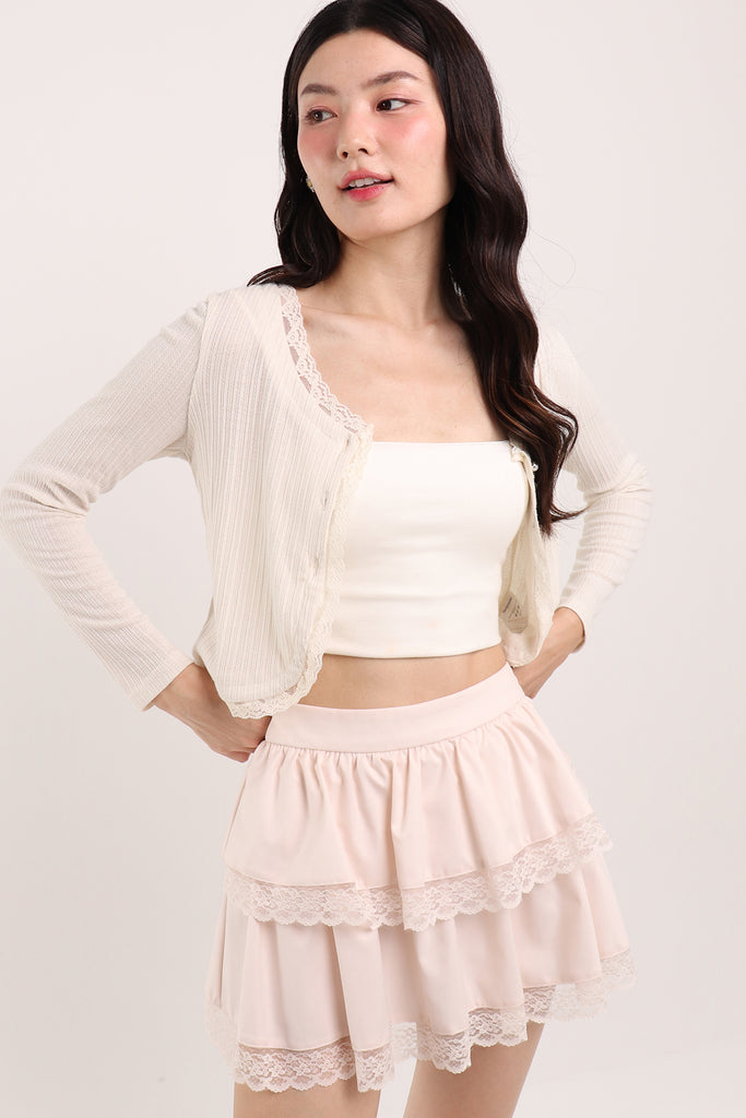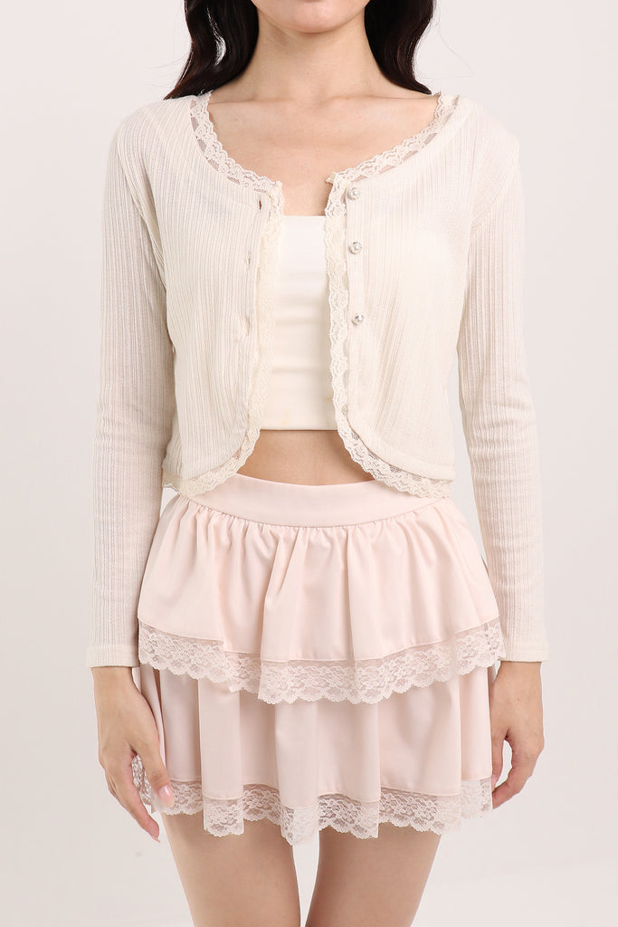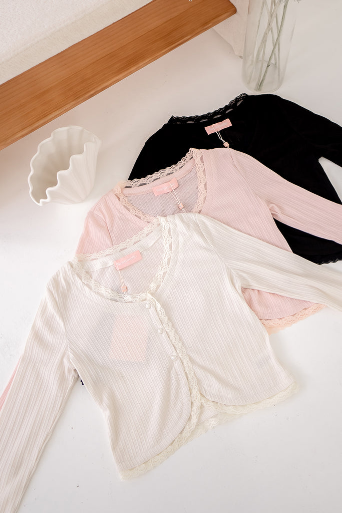 Nara Lace Cardigan is a delicate, lightweight layering piece featuring intricate lace detailing for a romantic, feminine touch. Its semi-sheer fabric adds elegance while still being breathable and comfortable. Perfect for elevating both casual and dressy outfits, it brings effortless charm to any look.