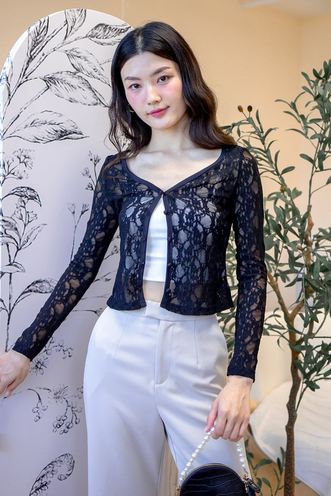 ROSA LACE SOFT CARDIGAN IN BLACK