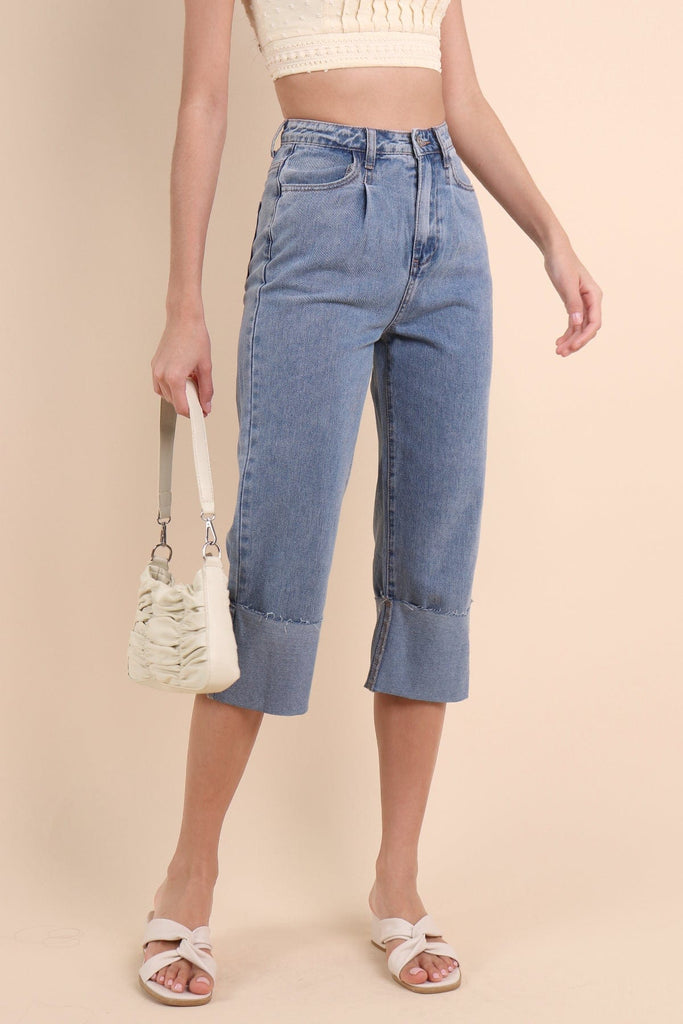 DAMARIS CUFFED DENIM CULOTTES IN ACID WASH