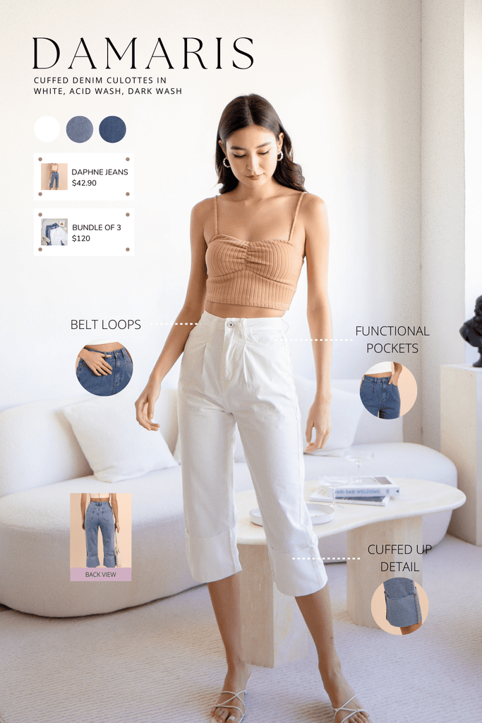 Another pair of denim wouldn't hurt! Now in culottes version, Damaris is perfect for girls who prefer a more relaxed look for a casual day out. There are endless pairings for denims. Simply throw it on and pair it with your favourite crop top and you are good to go!