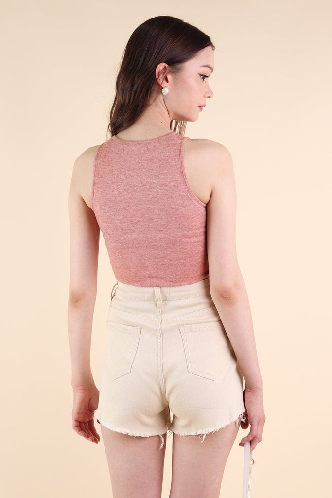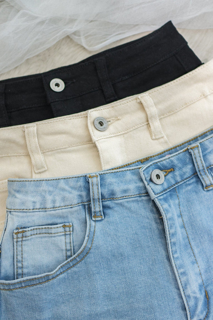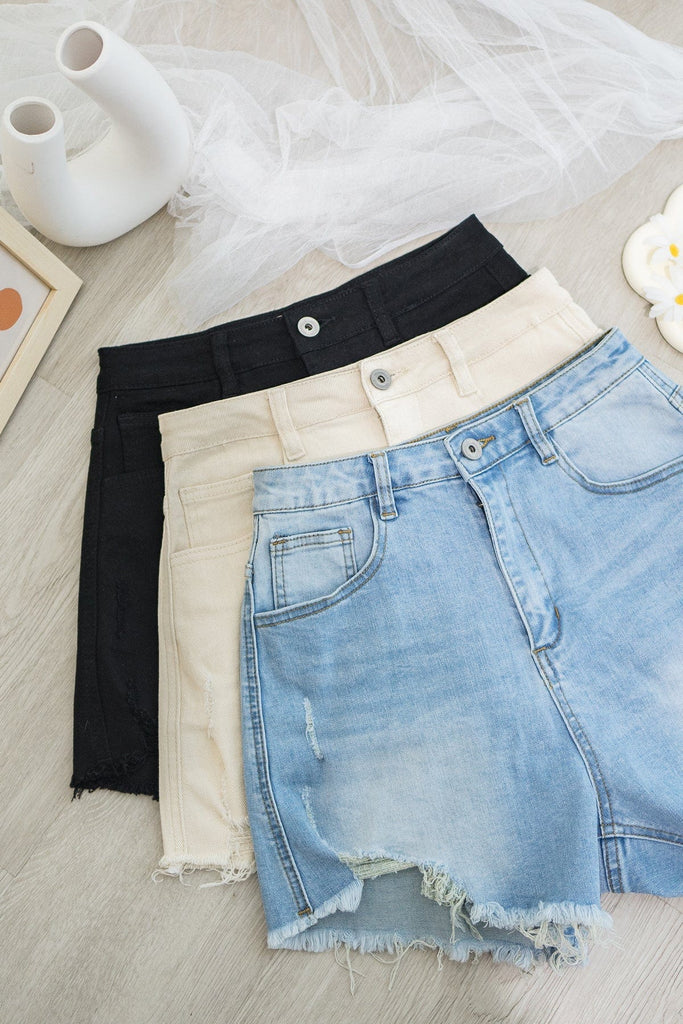 KELLY HIGH WAIST DENIM SHORTS IN ECRU