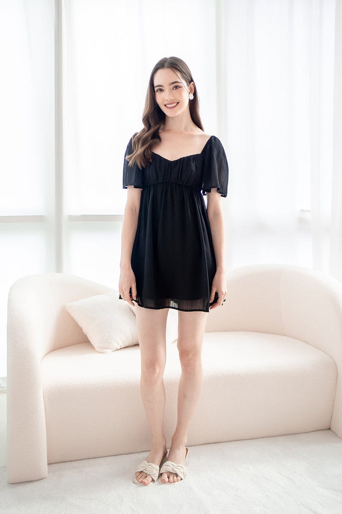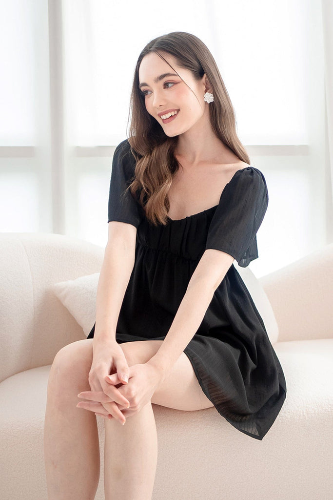 ALLIE SLEEVED BABYDOLL DRESS IN BLACK
