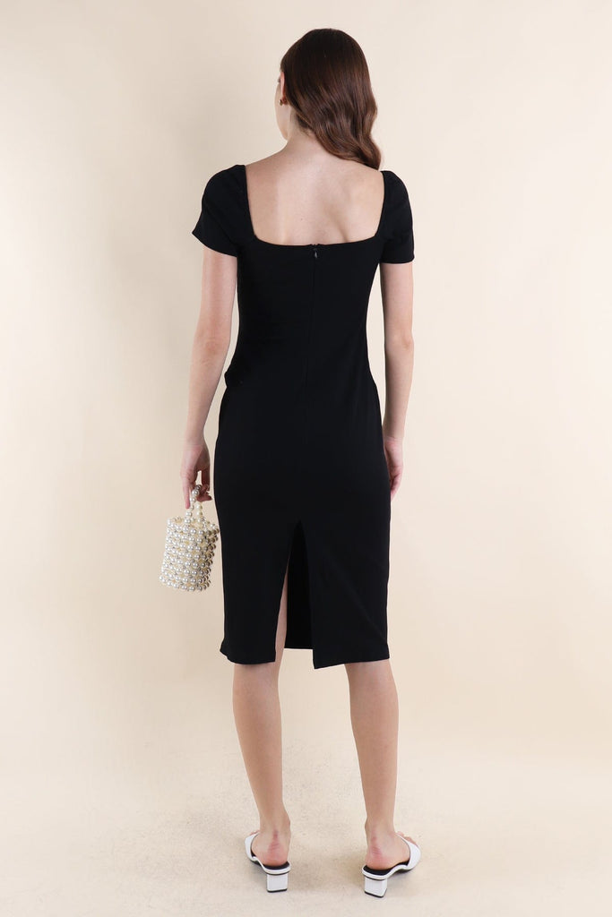 CINTRA KNOTTED RIBBED DRESS IN BLACK