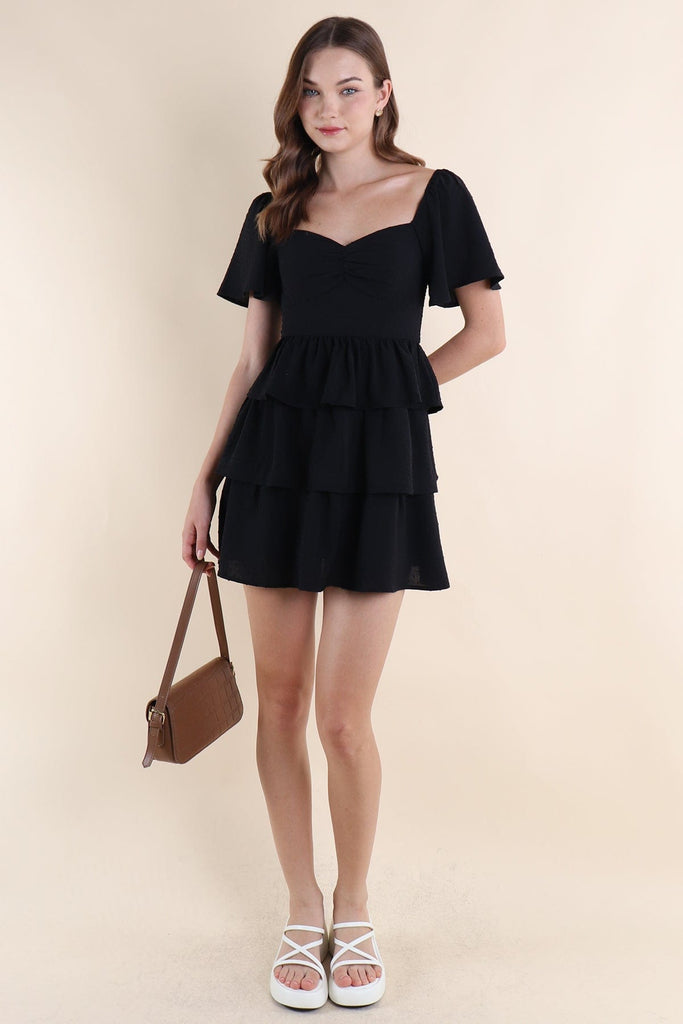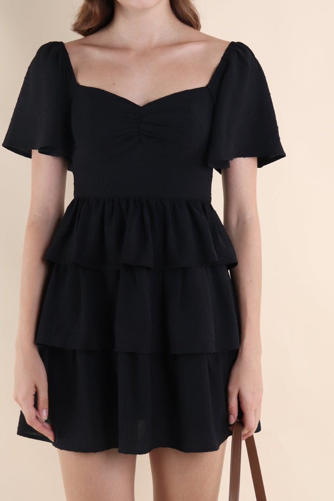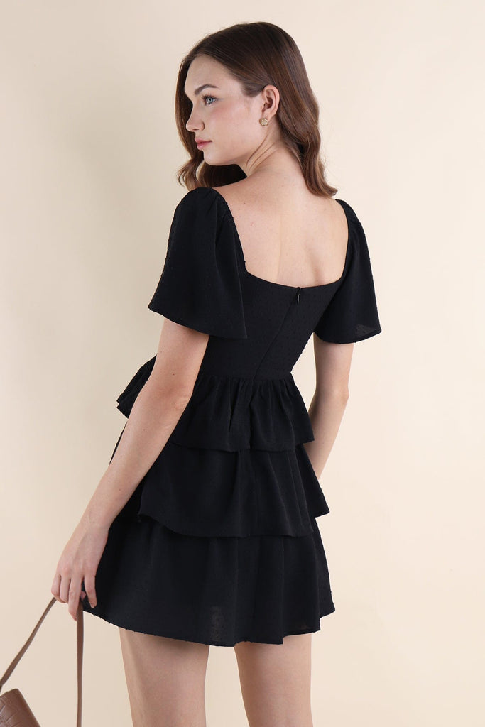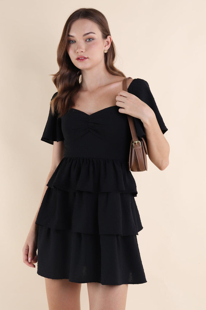 Twirl into a world of grace with Miki! This dress is a fashion statement that celebrates the beauty of texture and design. Its Swiss-dot pattern adds a fun and youthful vibe, while the ruffle-tiers adds a touch of playfulness and dimension to the look. A go-to piece for an effortlessly cute outfit for your summer adventures!