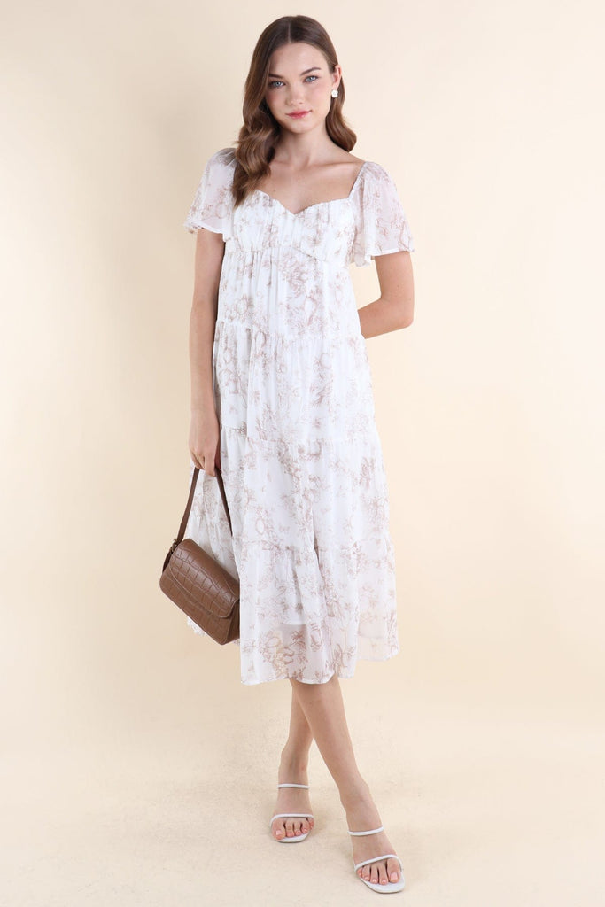 PARADISE FLORAL MIDAXI DRESS IN COCOA