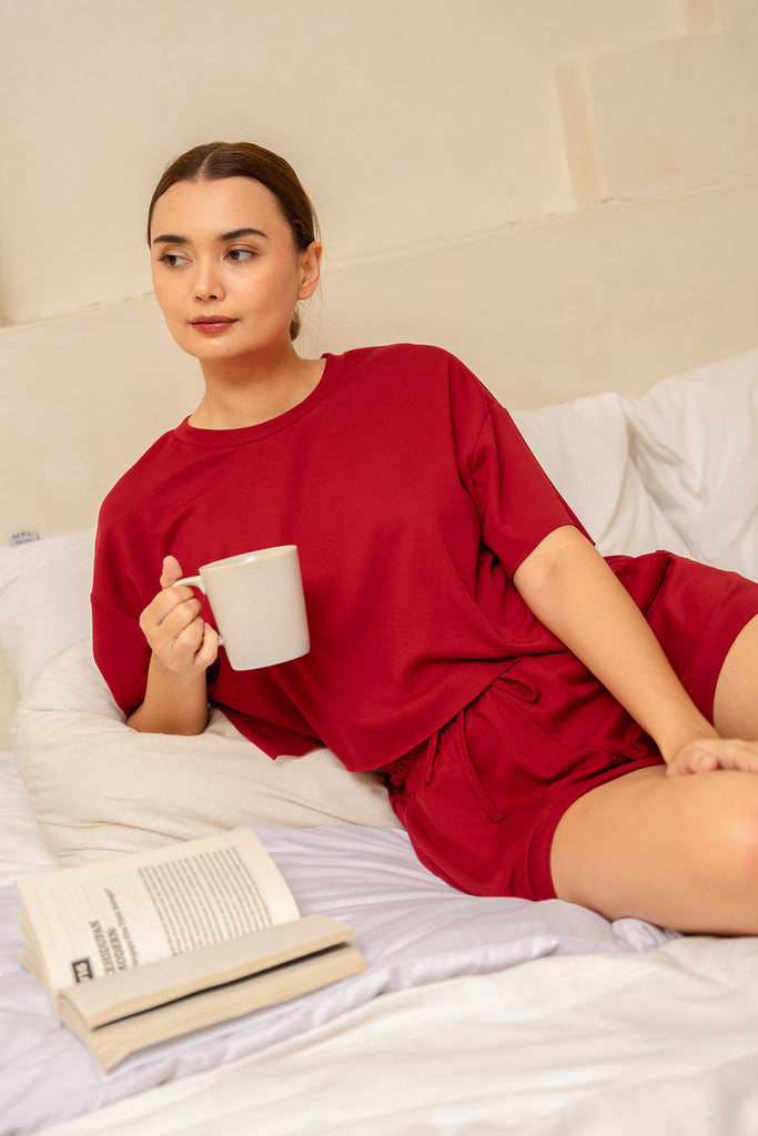 NIKO RAW HEM (TENCEL™) LOUNGE SET IN WINE