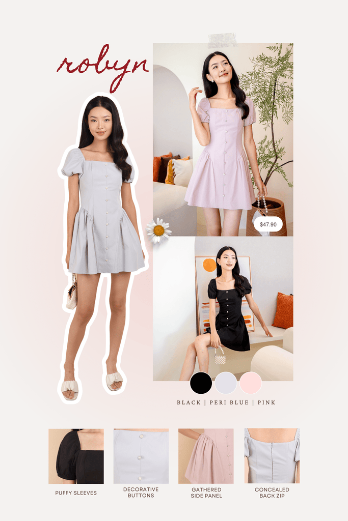 Robyn is a playful and feminine piece featuring voluminous puff sleeves that add dramatic flair to its silhouette. Designed with a flattering mini length, it combines elegance with a youthful edge, making it perfect for both casual and semi-formal occasions. Its fitted bodice and flowy design create a balanced, eye-catching look that stands out with effortless charm.