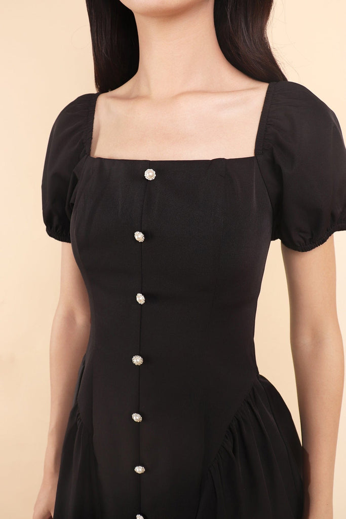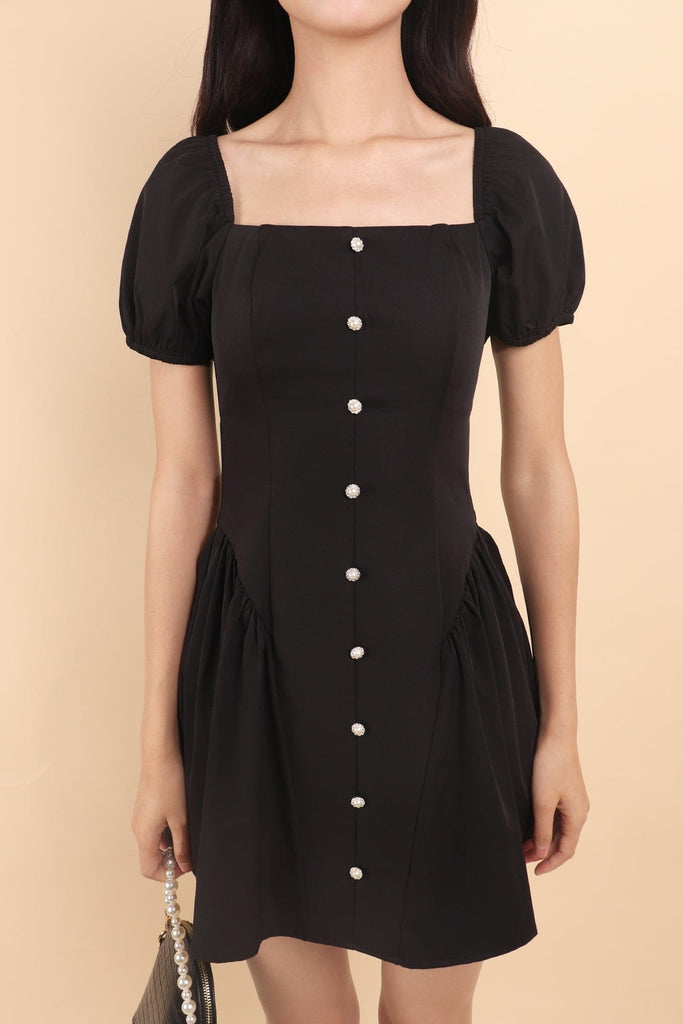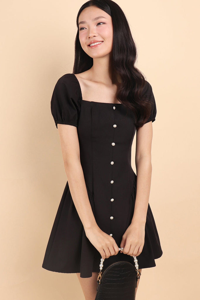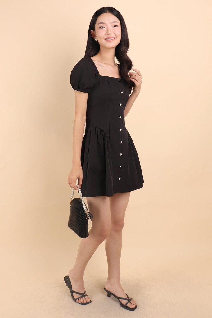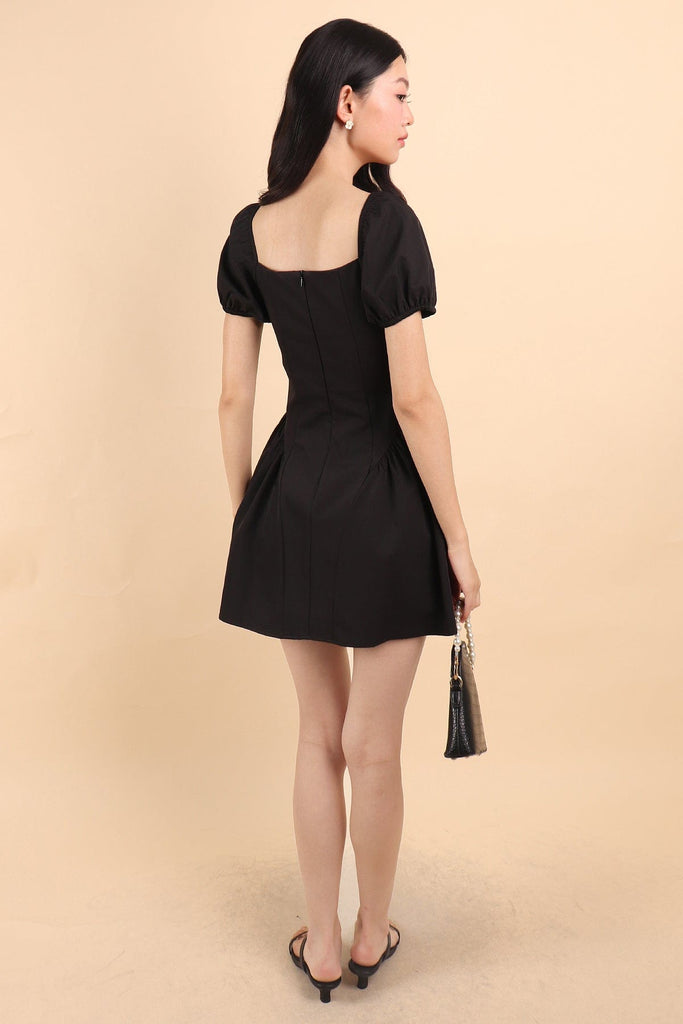 ROBYN POOF SLEEVED MINI DRESS IN BLACK