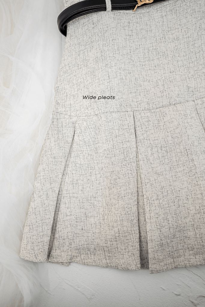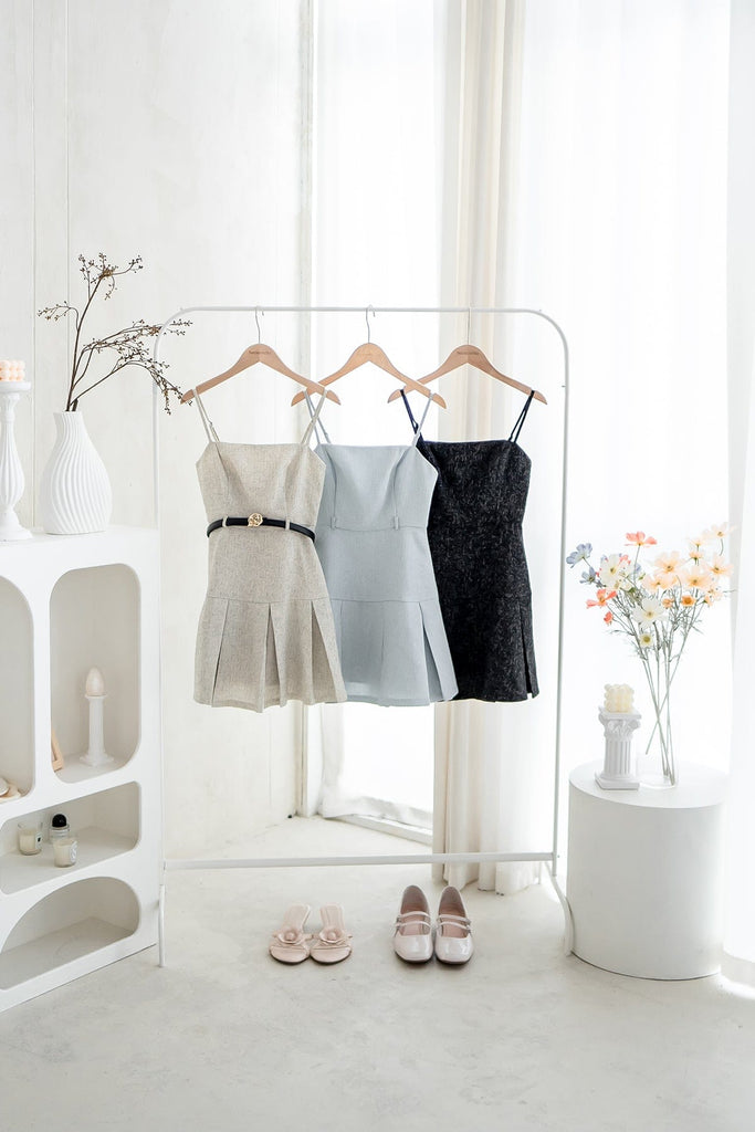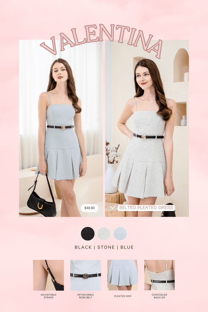 Valentina boasts a timeless design with its soft, pleated fabric that flows gracefully from the waist down. The cinched belt accentuates the waistline, creating a flattering, hourglass figure while adding a touch of elegance. With its classic silhouette and refined details, this dress effortlessly combines sophistication with a touch of modern charm.