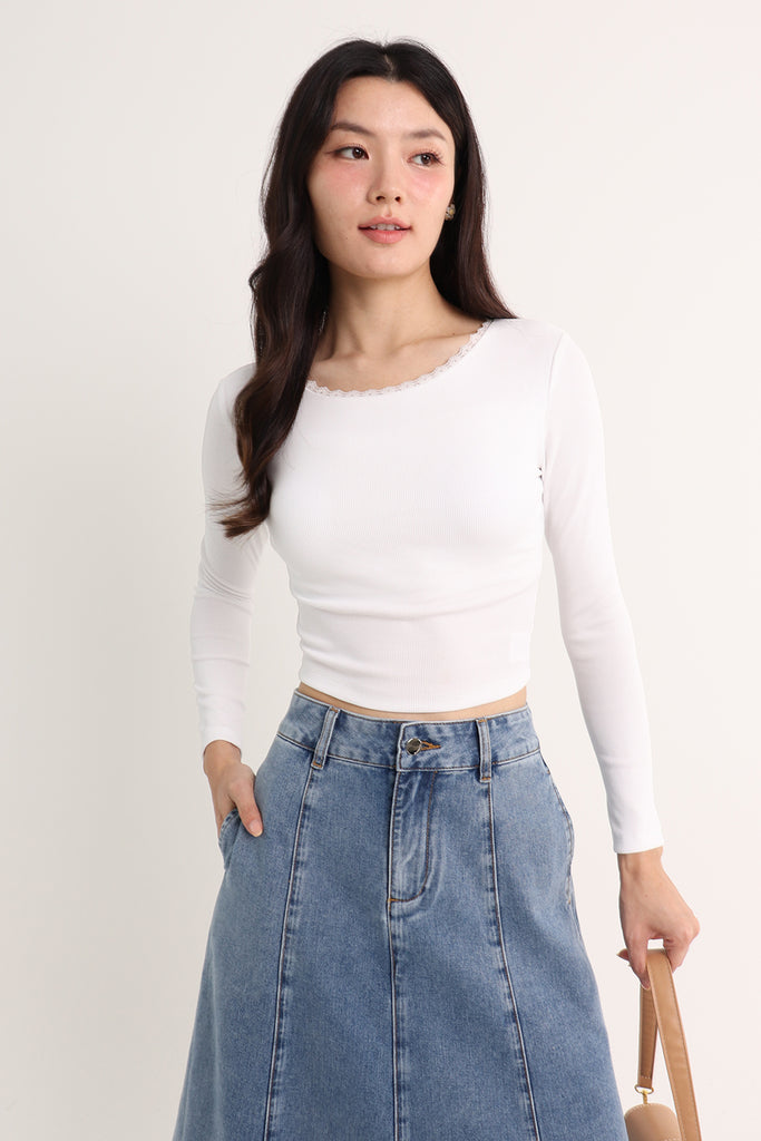 DULCETTE SLEEVED PADDED TOP IN WHITE