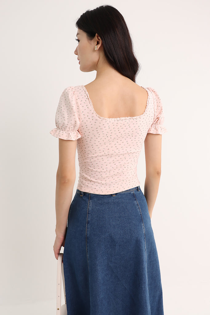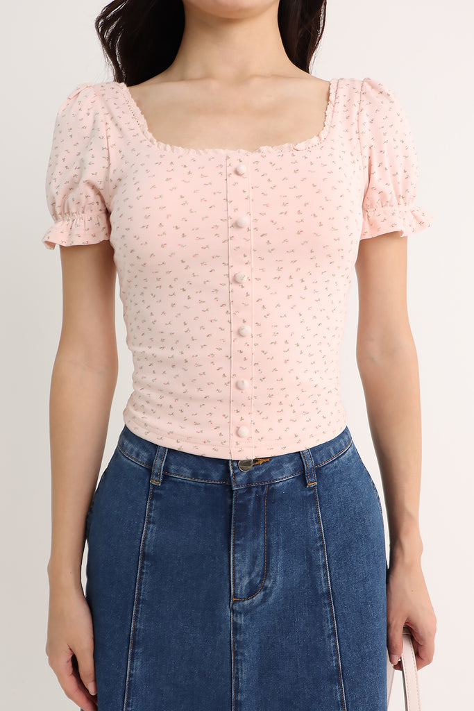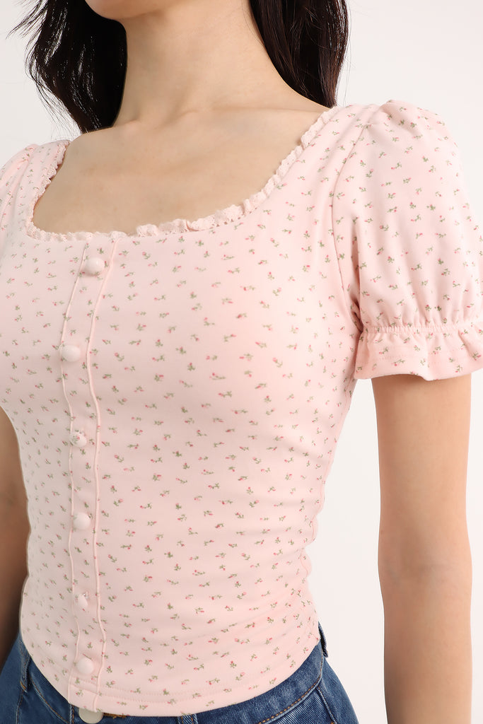 LISS FLORAL PADDED TEE TOP IN PINK