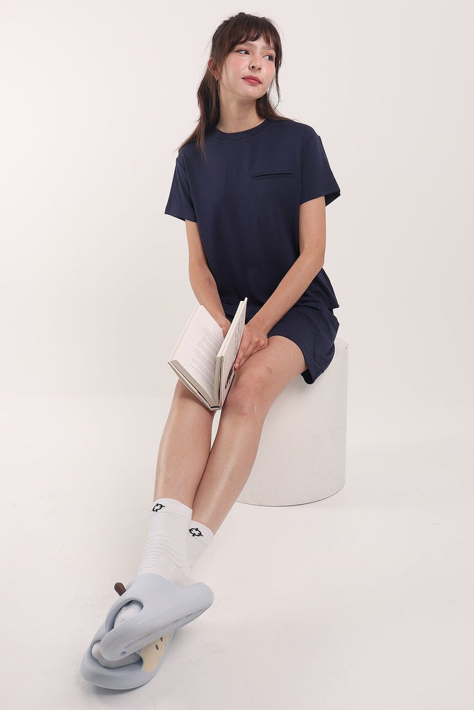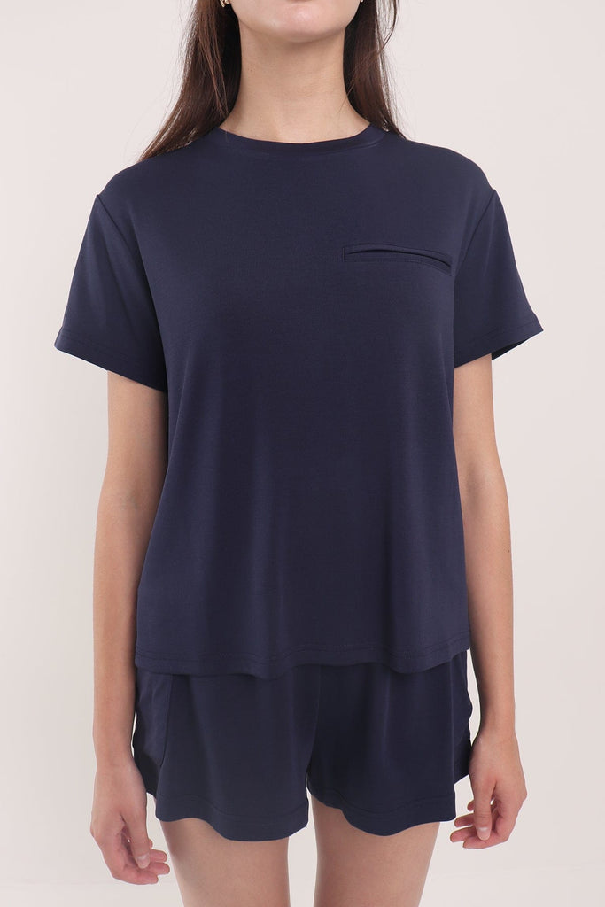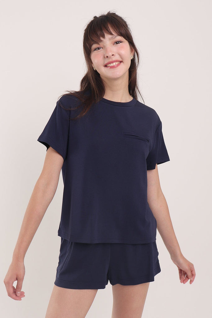 RESTOCKED**NICOLETTE (TENCEL™) LOUNGE TEE SET IN NAVY