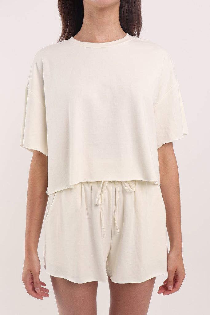 NIKO RAW HEM (TENCEL™) LOUNGE SET IN CREAM