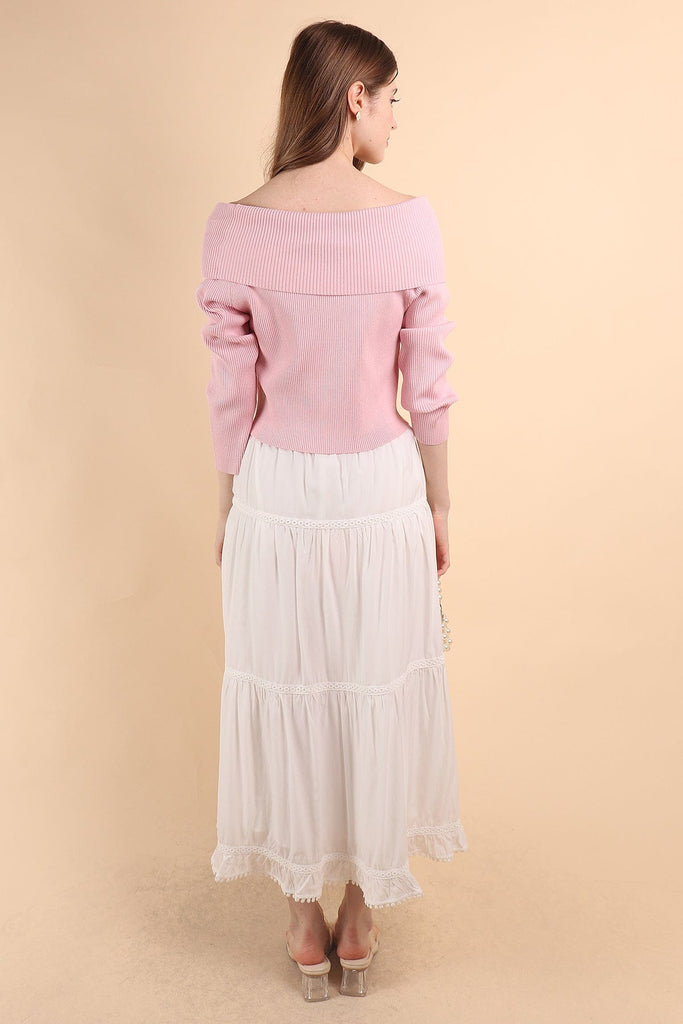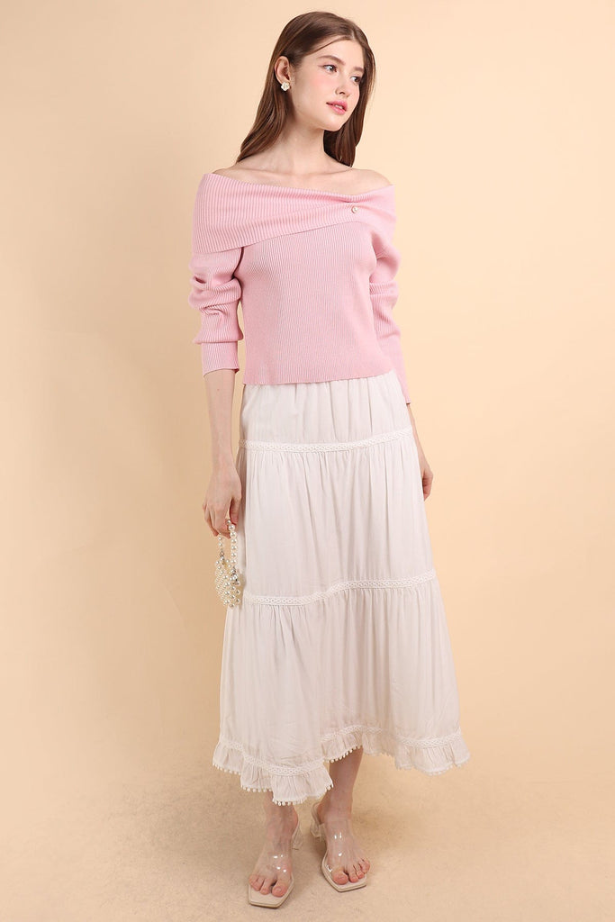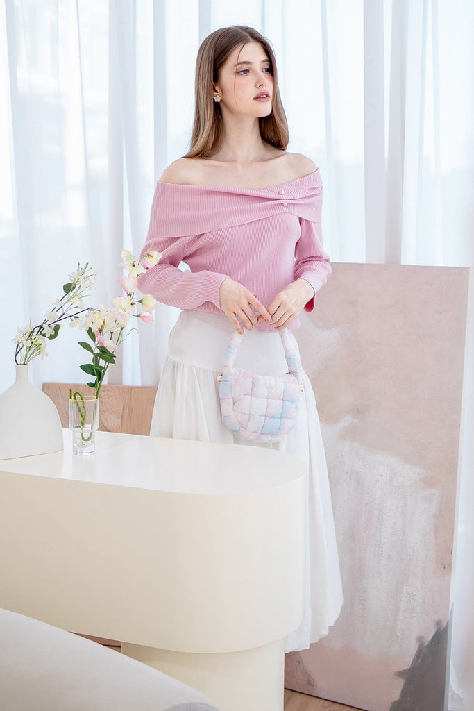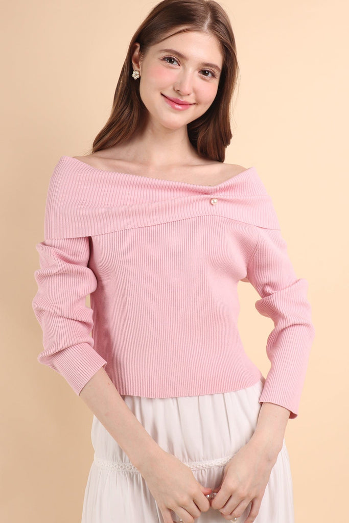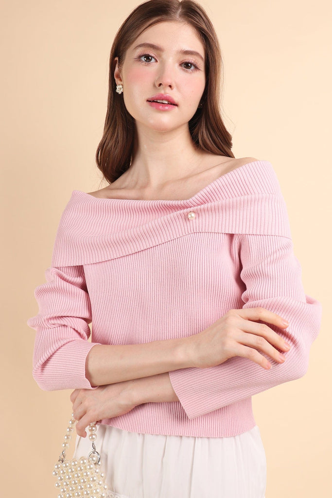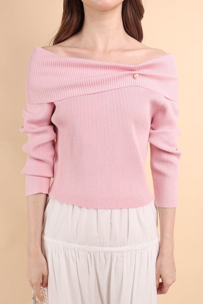 TANAIA PEARL DETAIL KNIT TOP IN PINK
