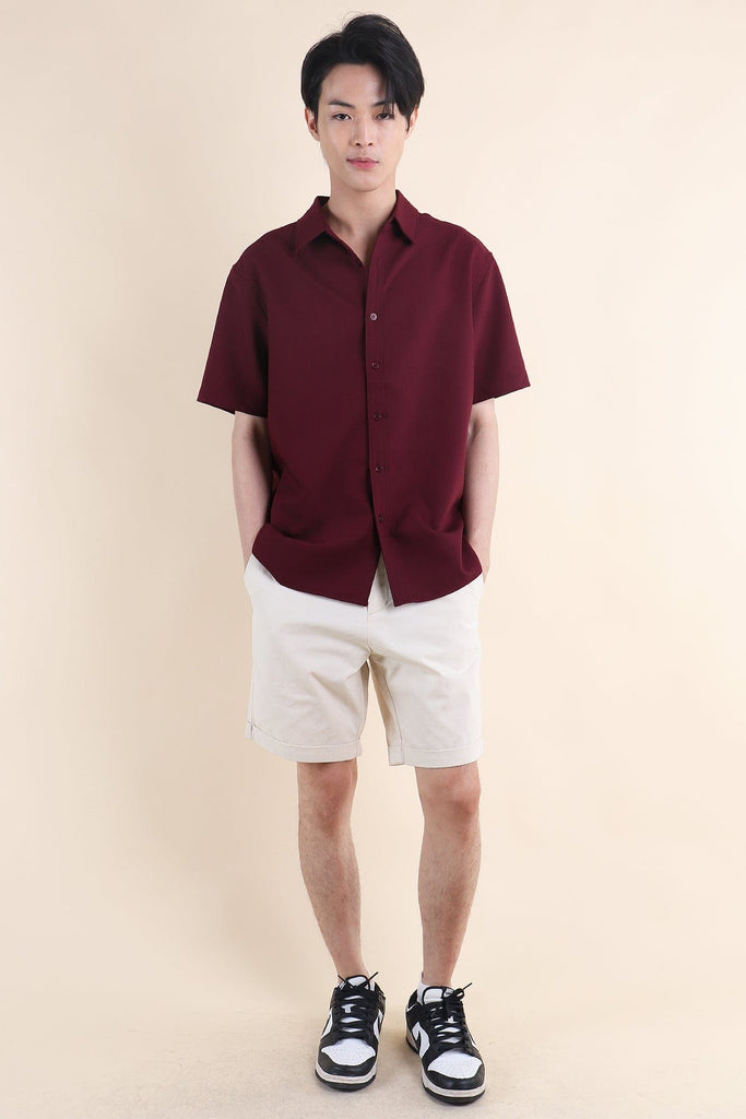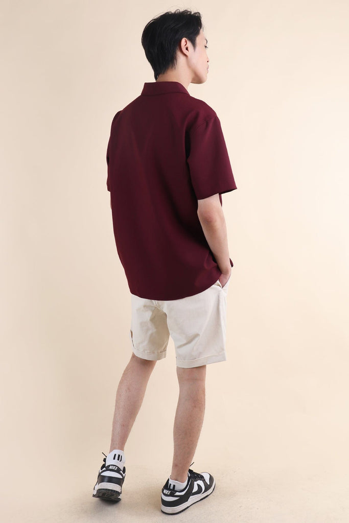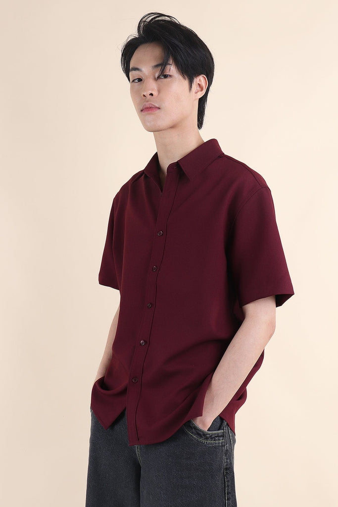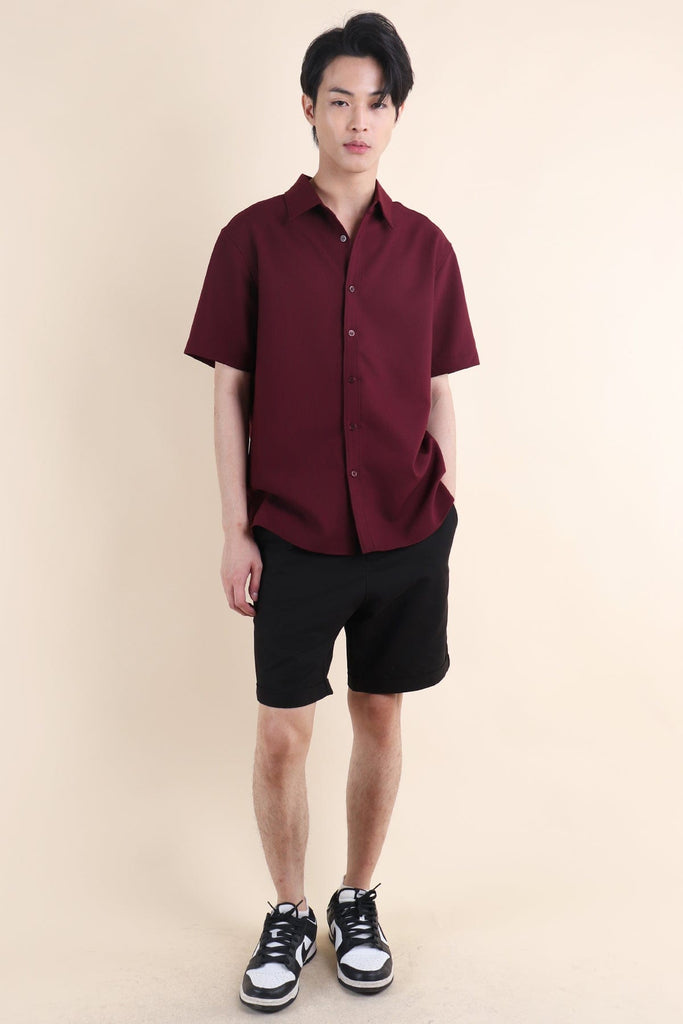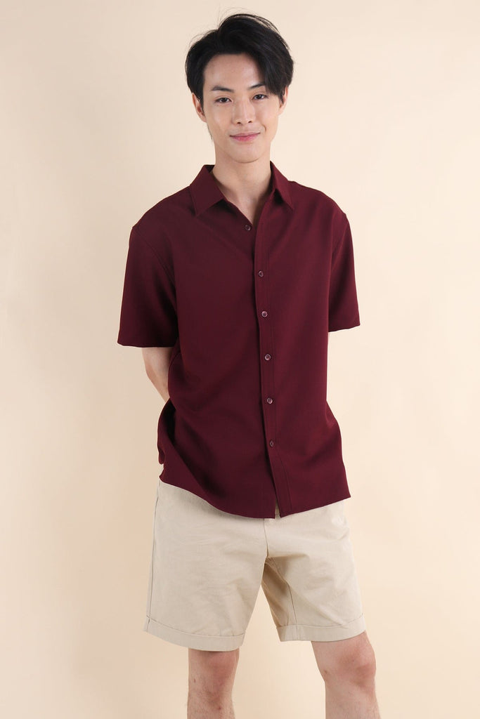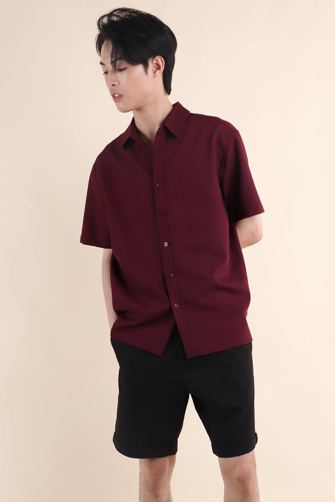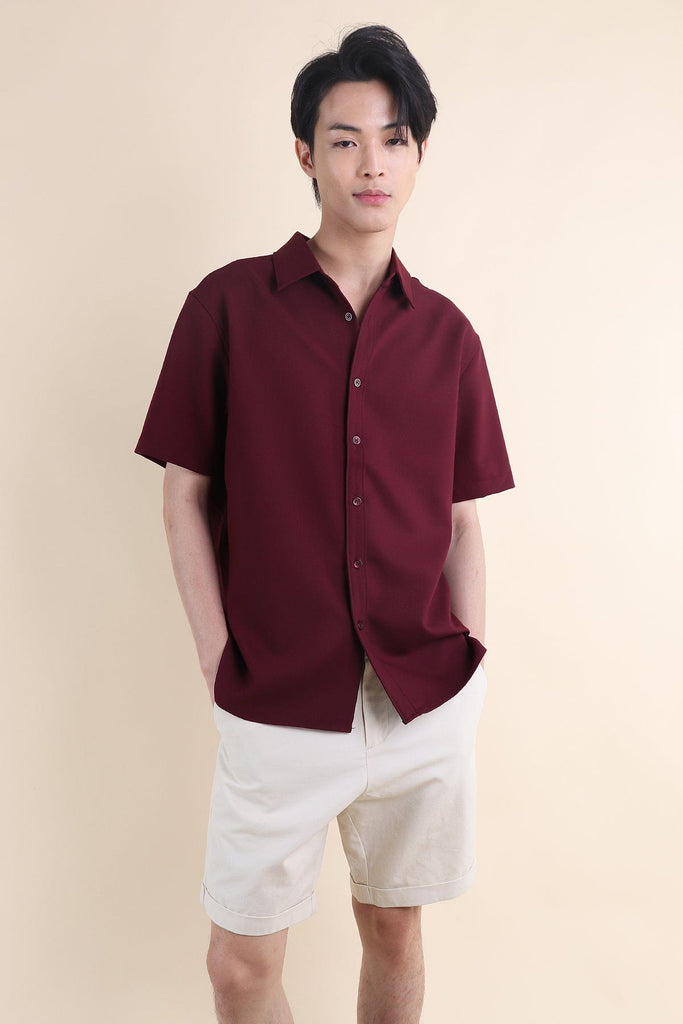 CALLAN BUTTON UP COLLAR SHIRT IN WINE