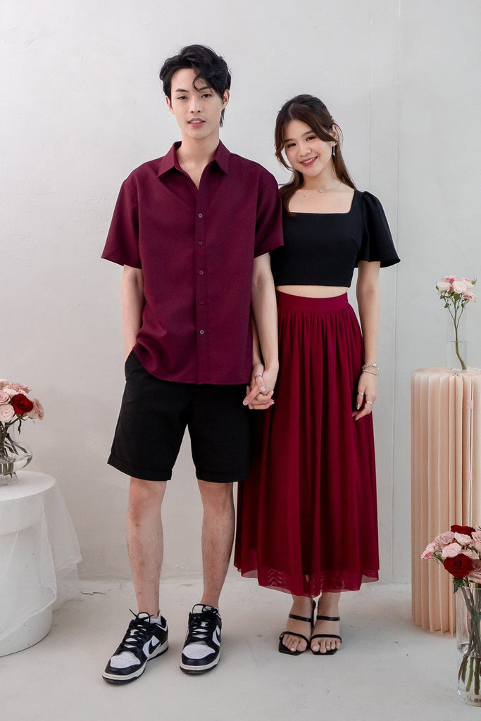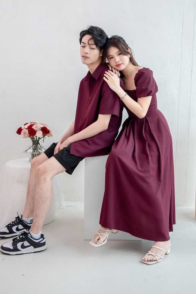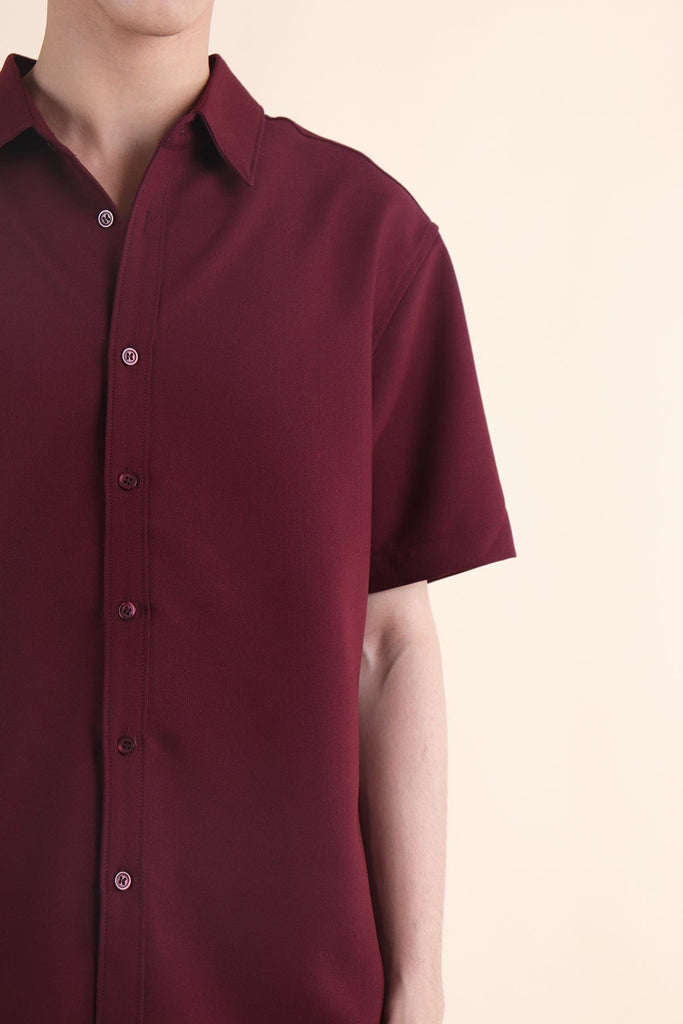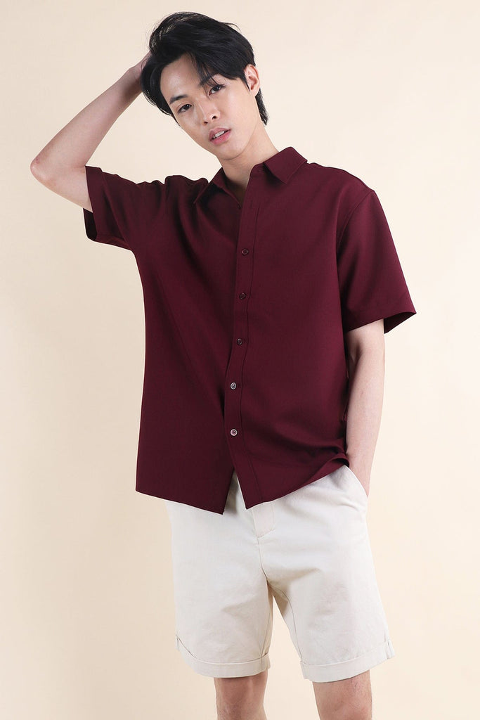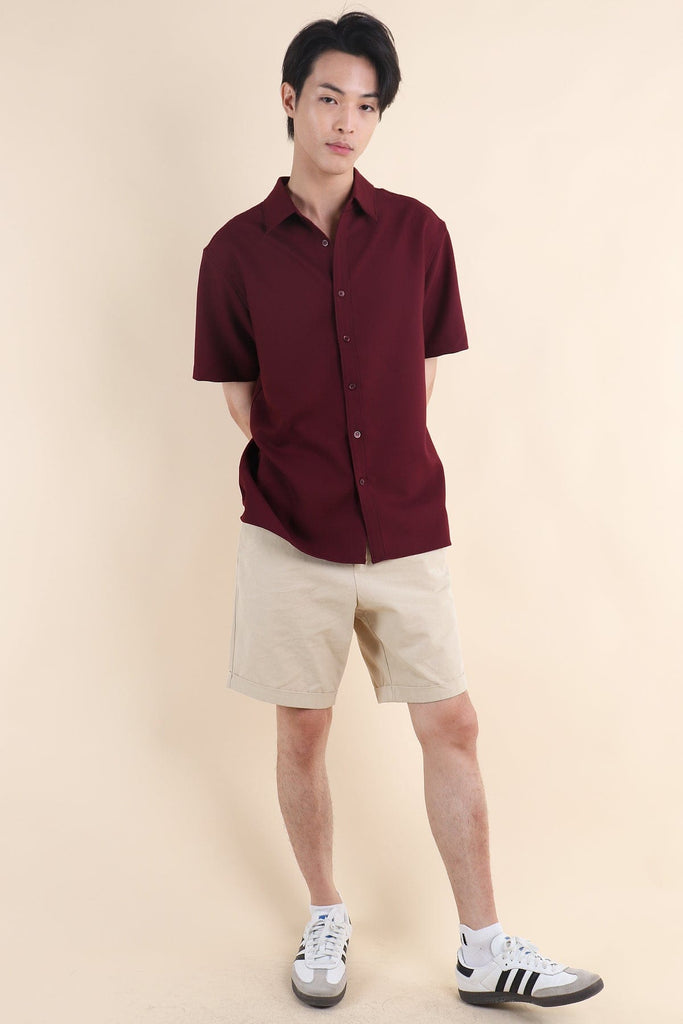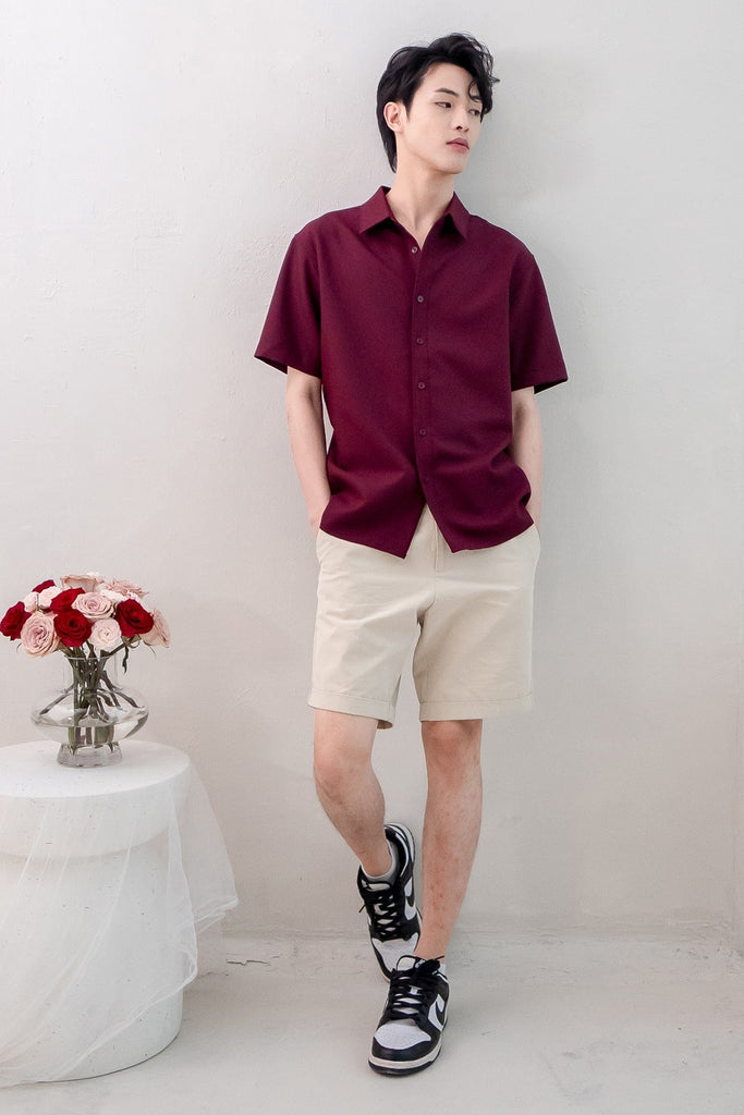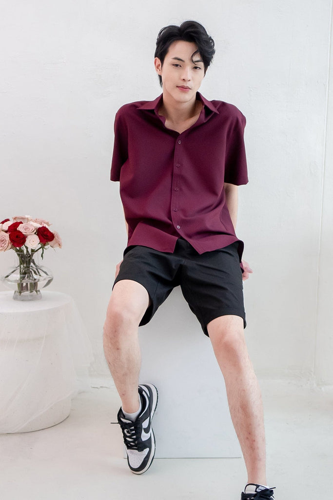 CALLAN BUTTON UP COLLAR SHIRT IN WINE