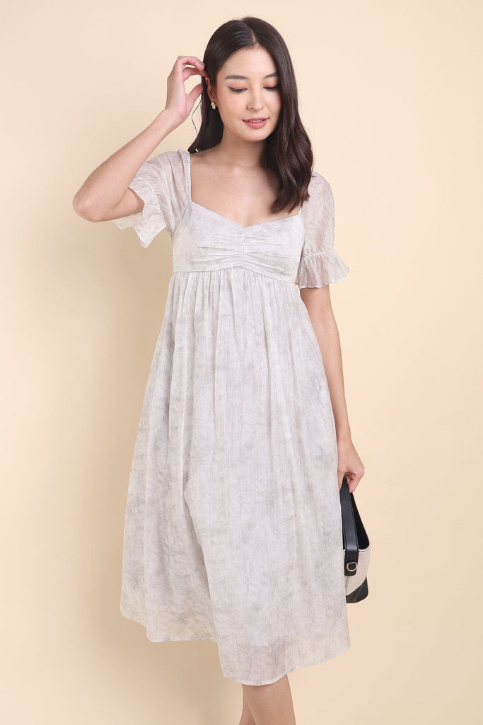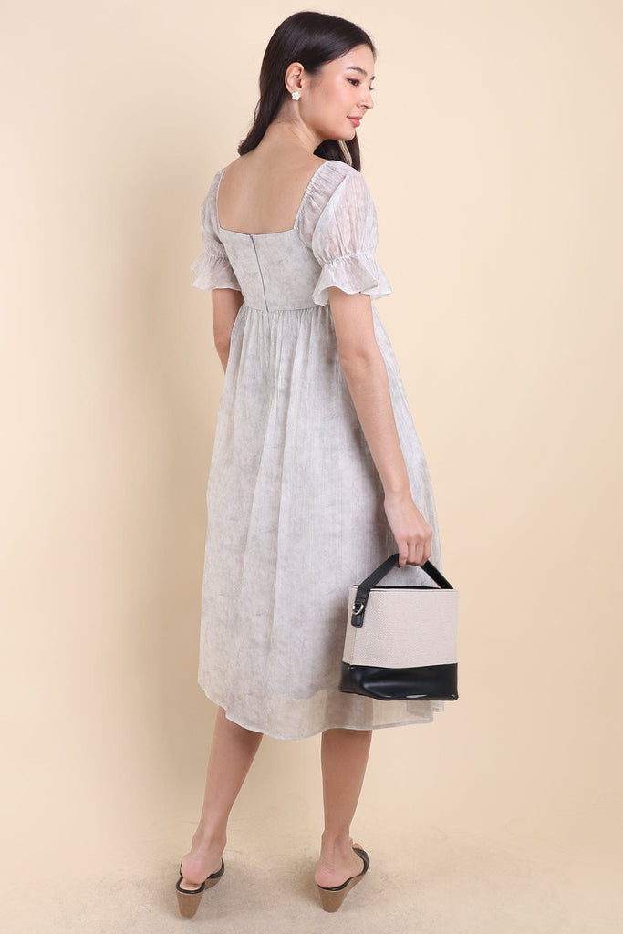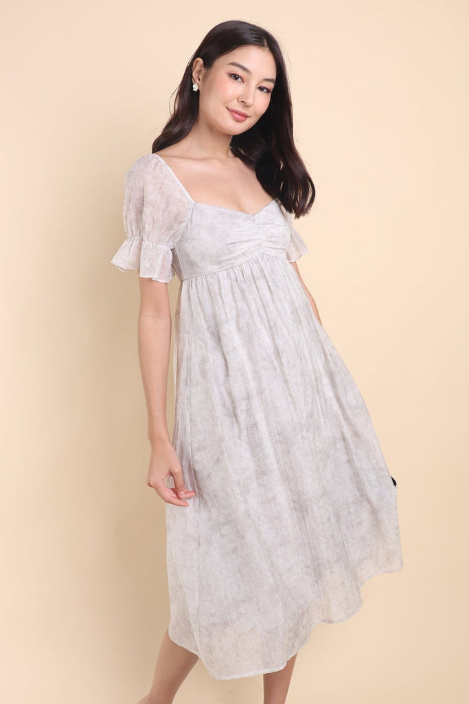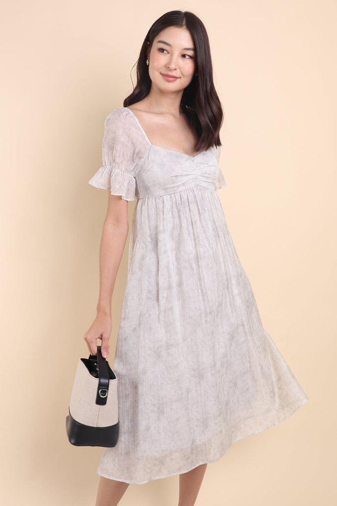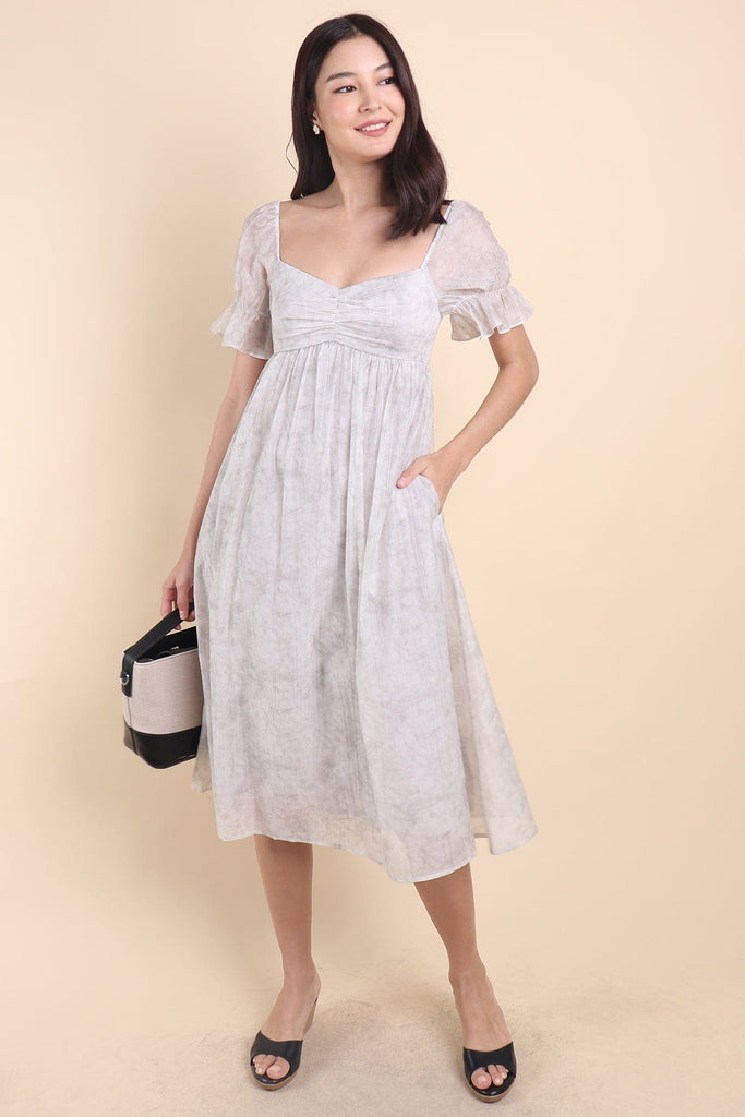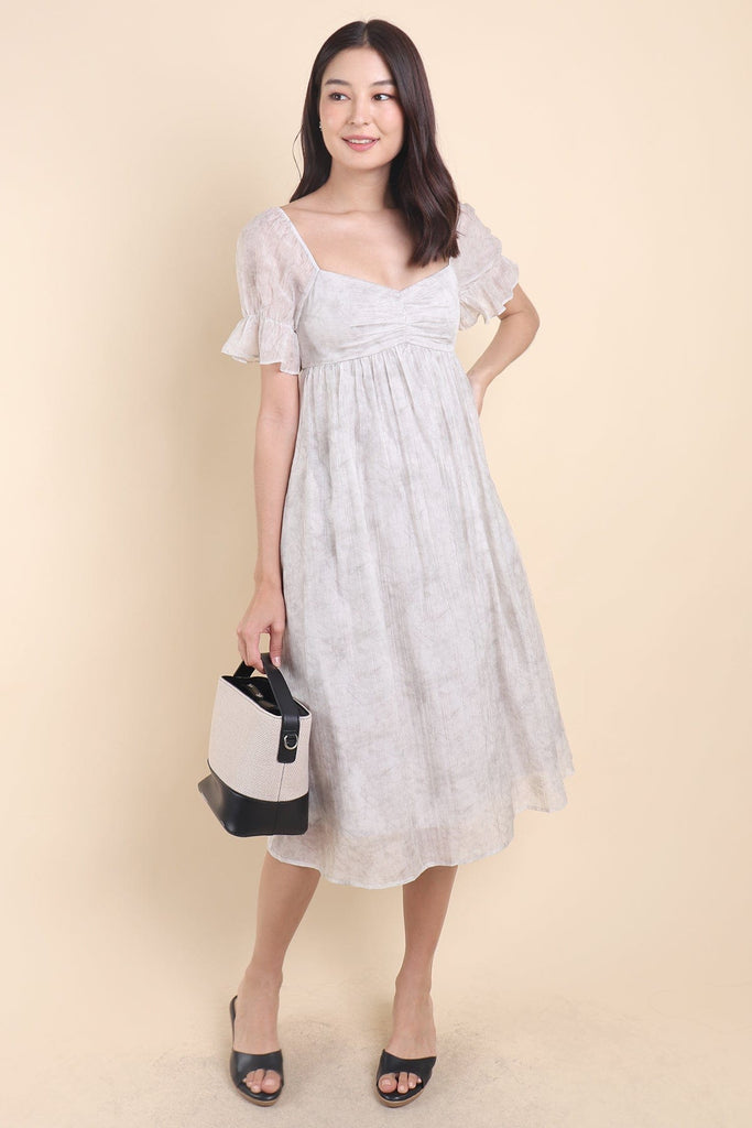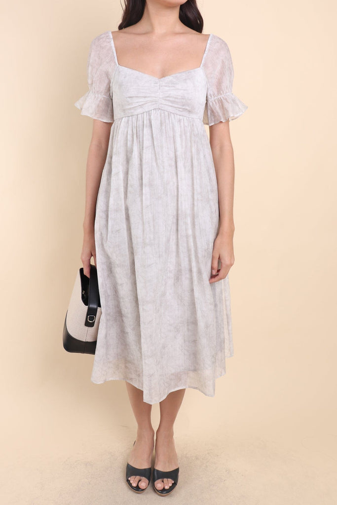 PRAIRIE RUCHED MIDAXI DRESS IN GREY