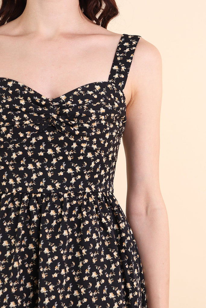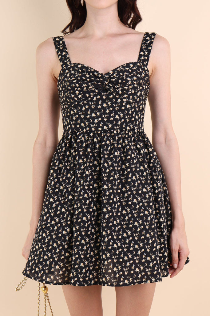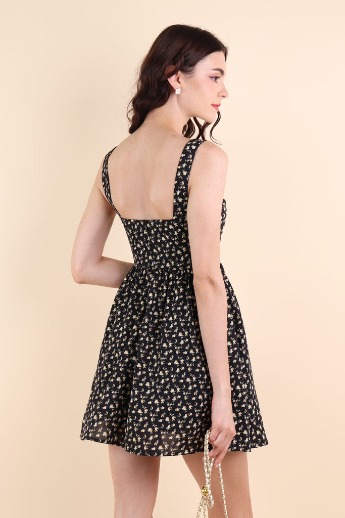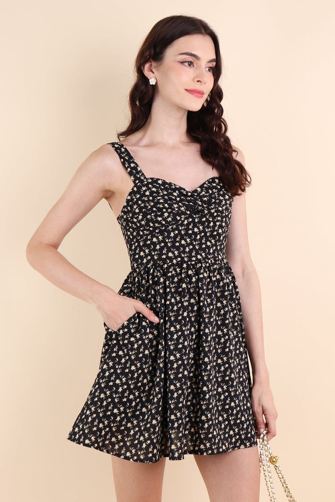 CLOVER FLORAL ROMPER DRESS IN BLACK