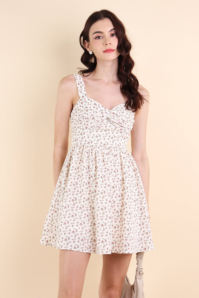 CLOVER FLORAL ROMPER DRESS IN CREAM
