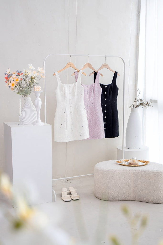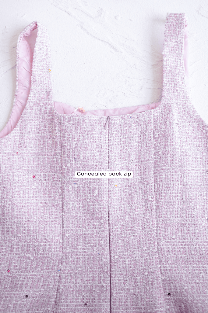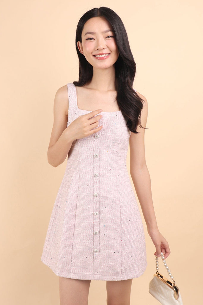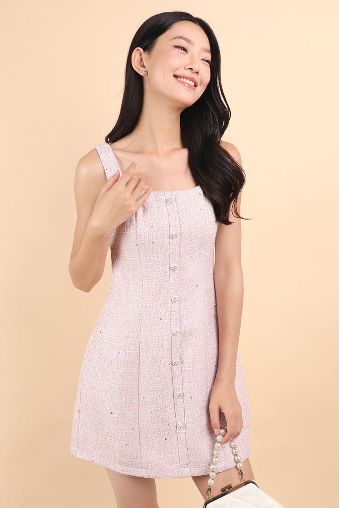 ADORE TWEED MINI DRESS IN LILAC PINK