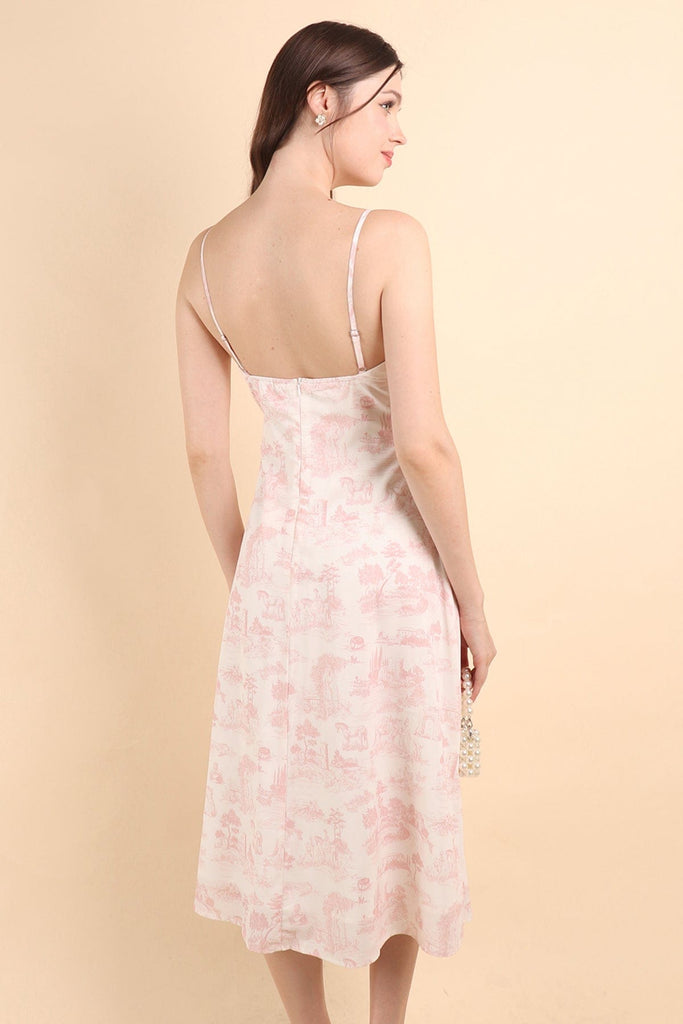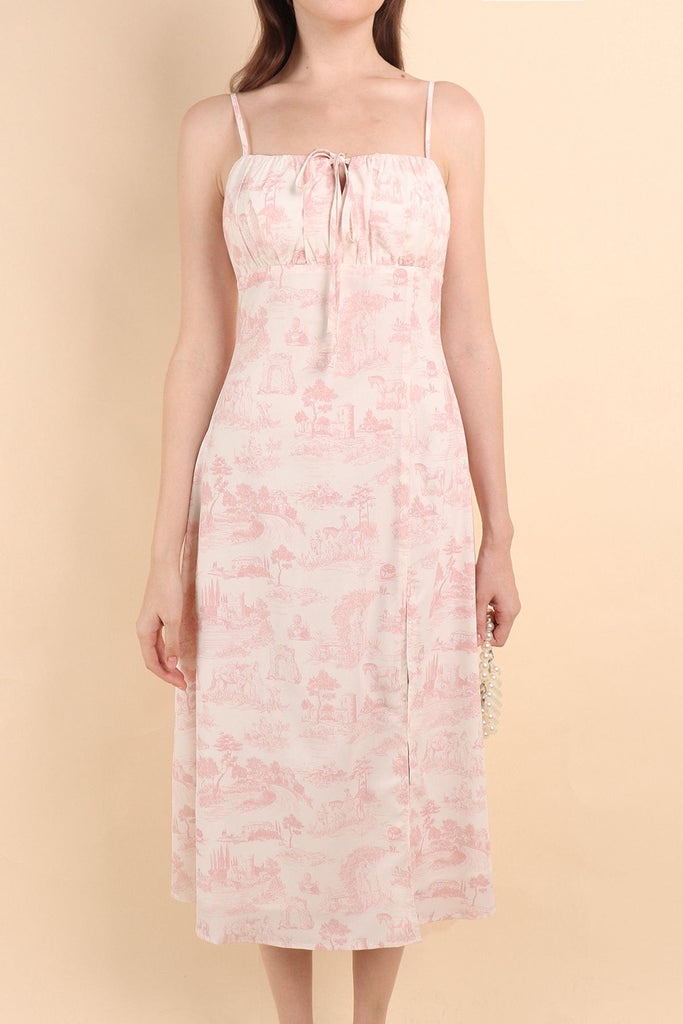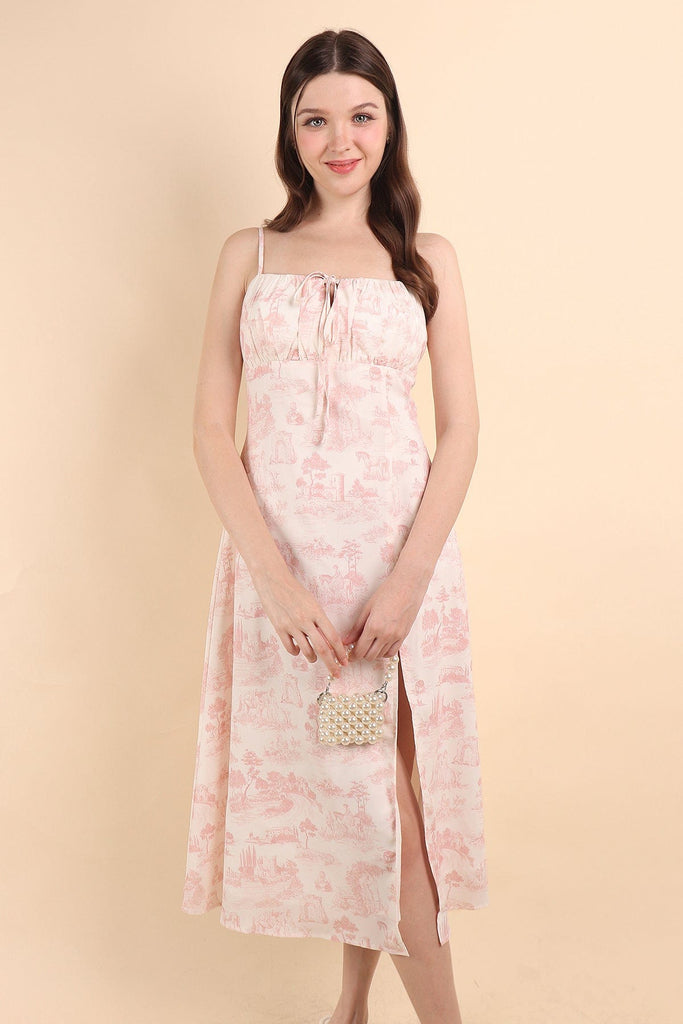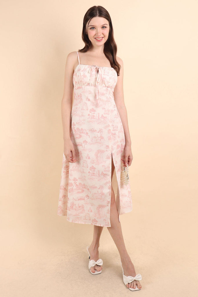 FLORENCE TOILE RUCHED SLIT DRESS IN CREAM PINK