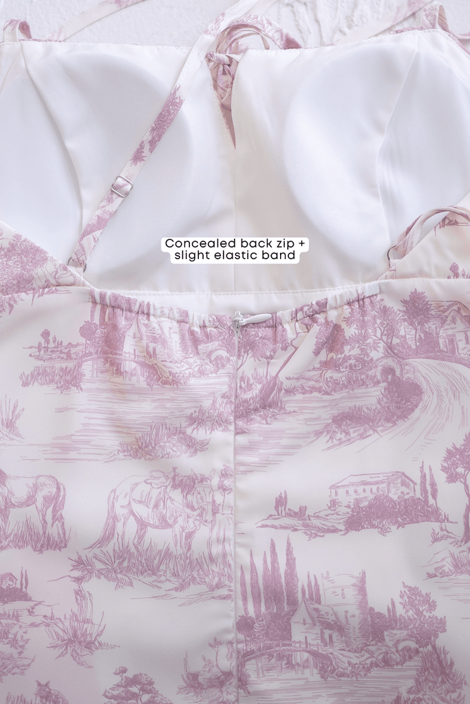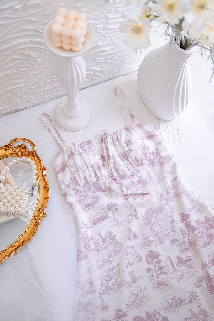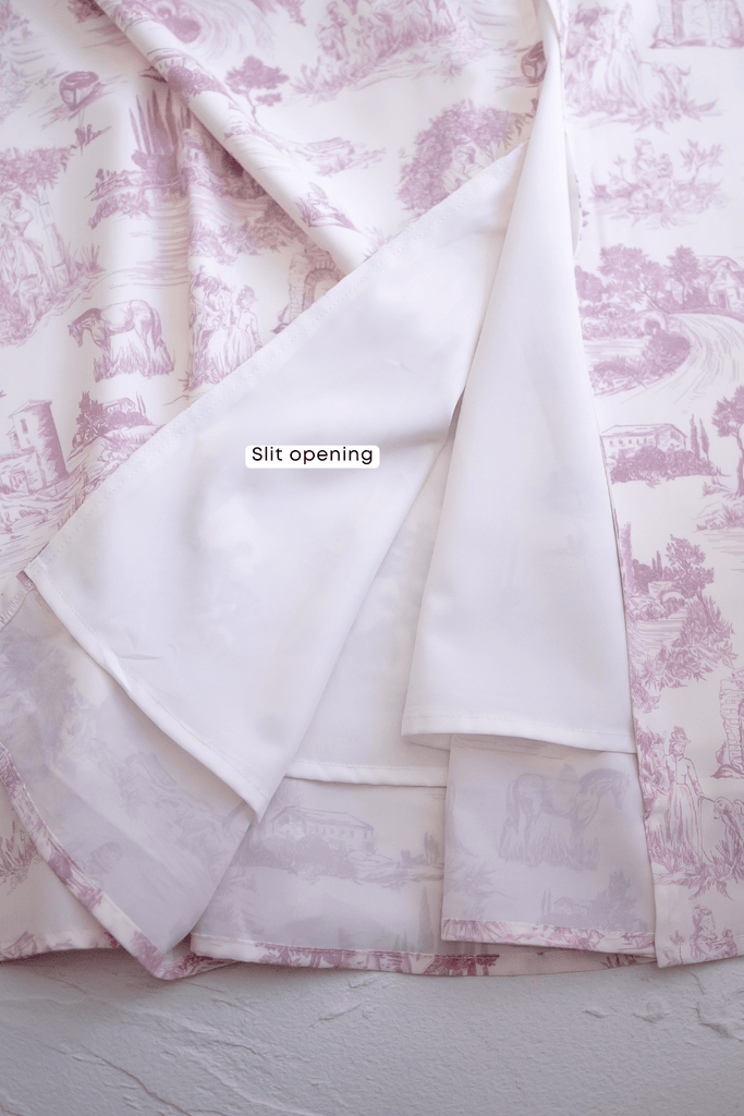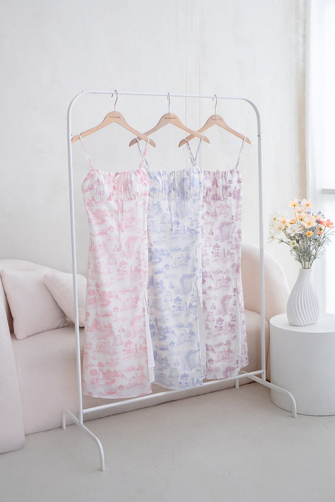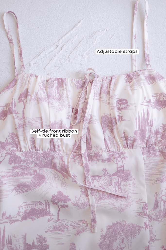 Captures the romance of a stroll, with its delicate print and graceful ruching that hugs in all the right places. A soft slit adds a touch of allure, letting you move with ease as if caught in a gentle city breeze. Elegant yet effortless, it's the kind of dress that turns cobblestone walks and café moments into something unforgettable.