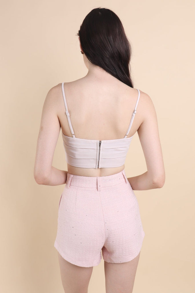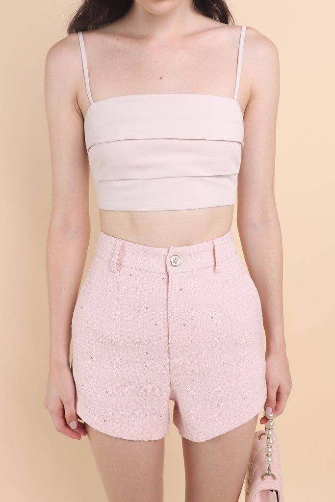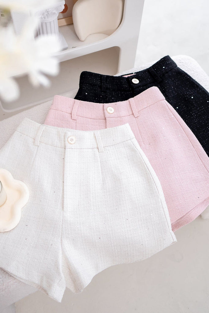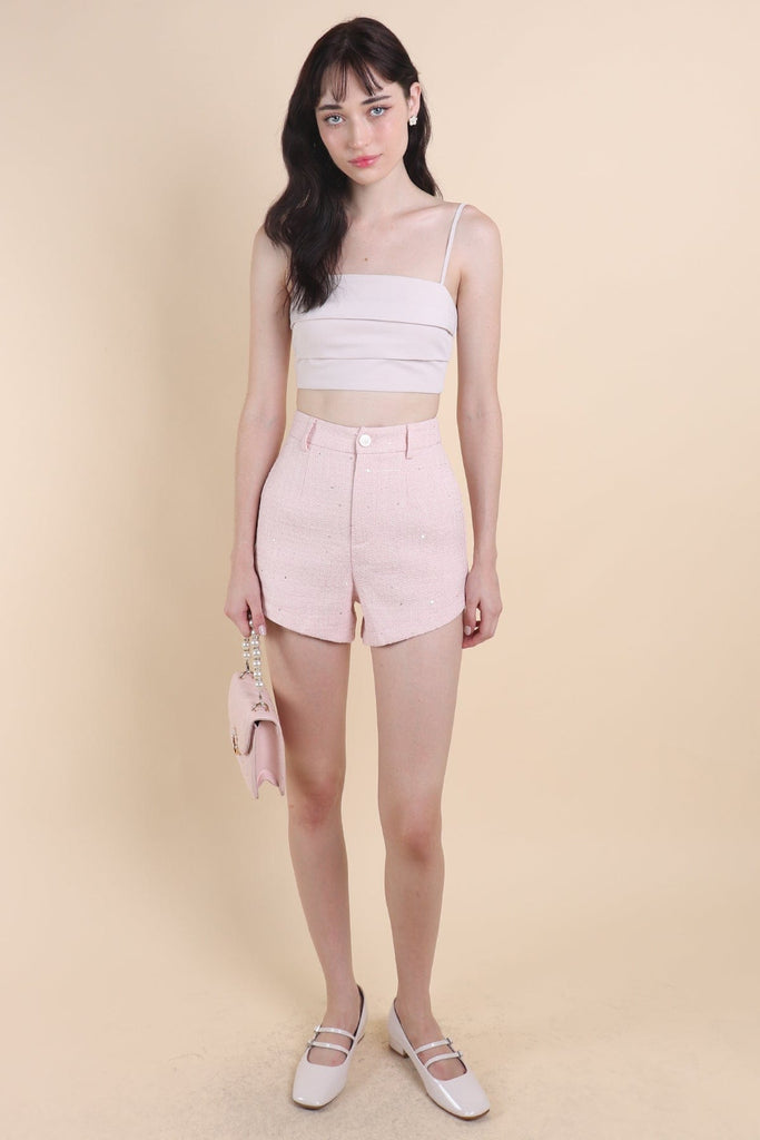 RESTOCKED** CAMILLE TWEED BUTTON SHORTS IN PINK