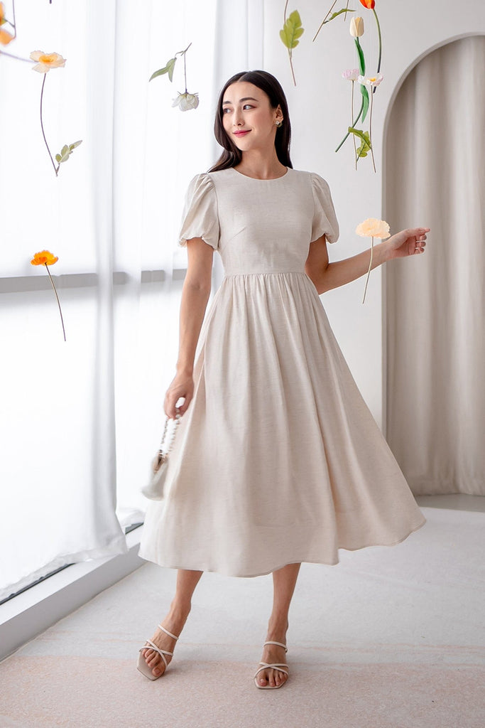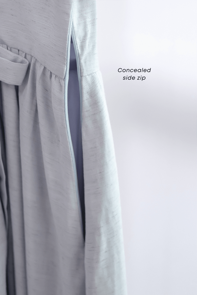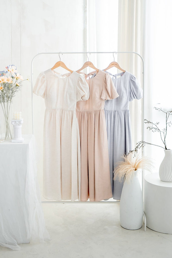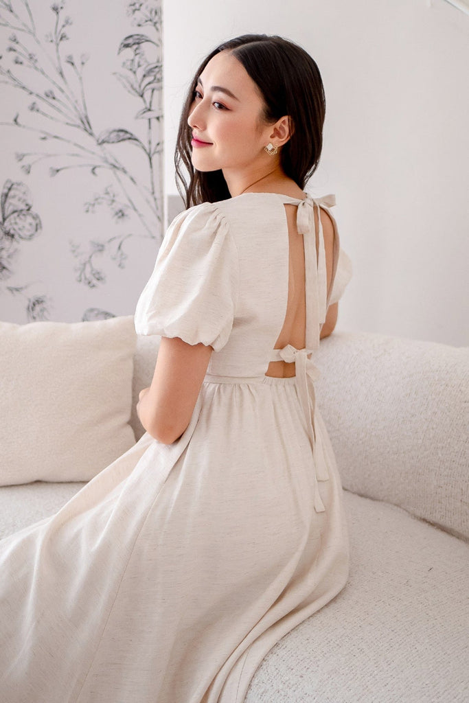 Acha combines contemporary style with comfort, featuring a sleek, padded bodice that offers both support and a flattering fit. Its midaxi length adds a touch of elegance, while the adjustable tie-back detail ensures a customizable, tailored silhouette. Made from a high-quality fabric, this dress is perfect for effortlessly transitioning from day to night.