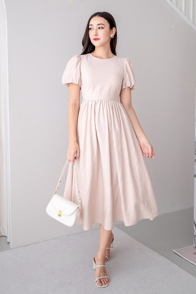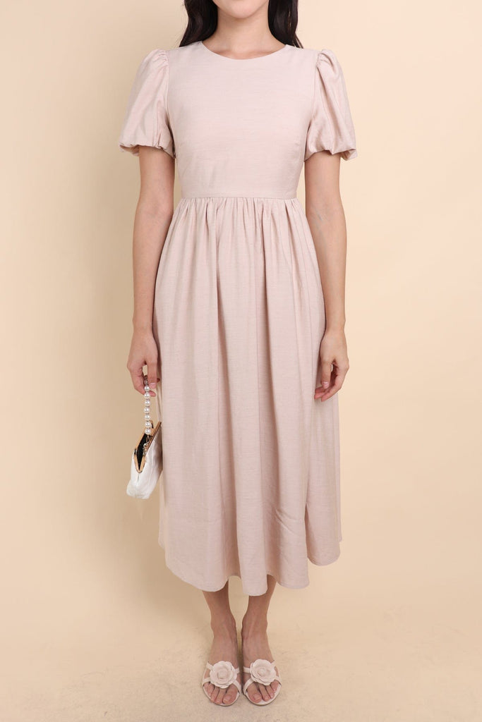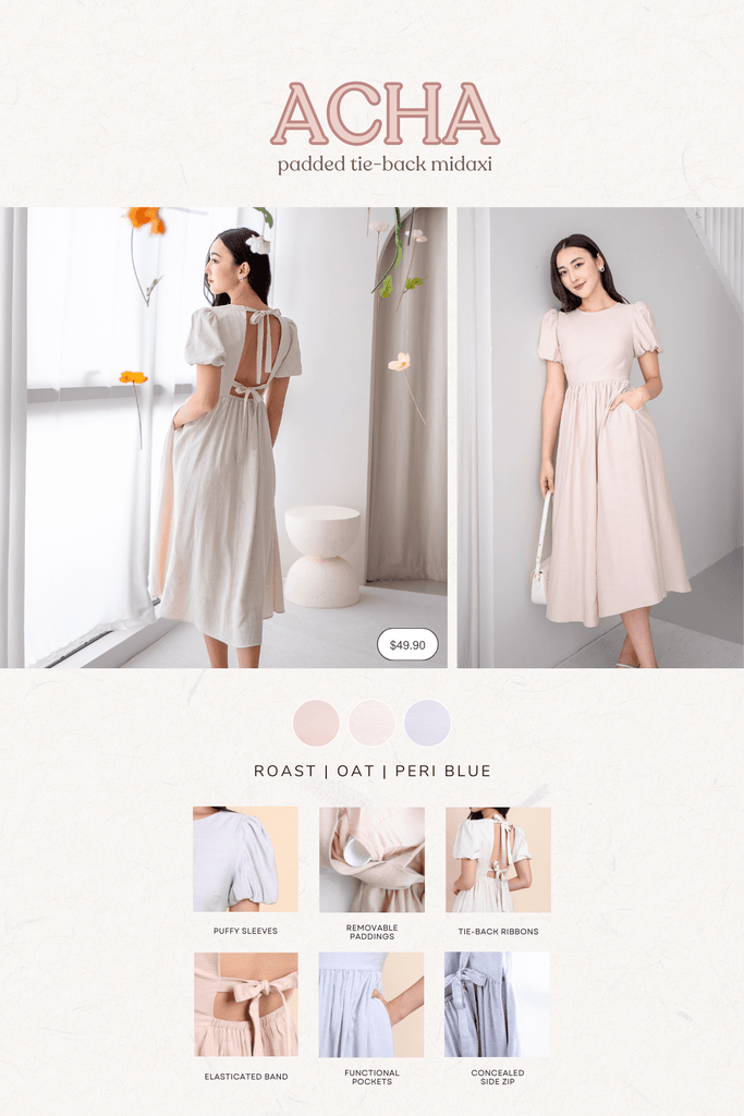 Acha combines contemporary style with comfort, featuring a sleek, padded bodice that offers both support and a flattering fit. Its midaxi length adds a touch of elegance, while the adjustable tie-back detail ensures a customizable, tailored silhouette. Made from a high-quality fabric, this dress is perfect for effortlessly transitioning from day to night.