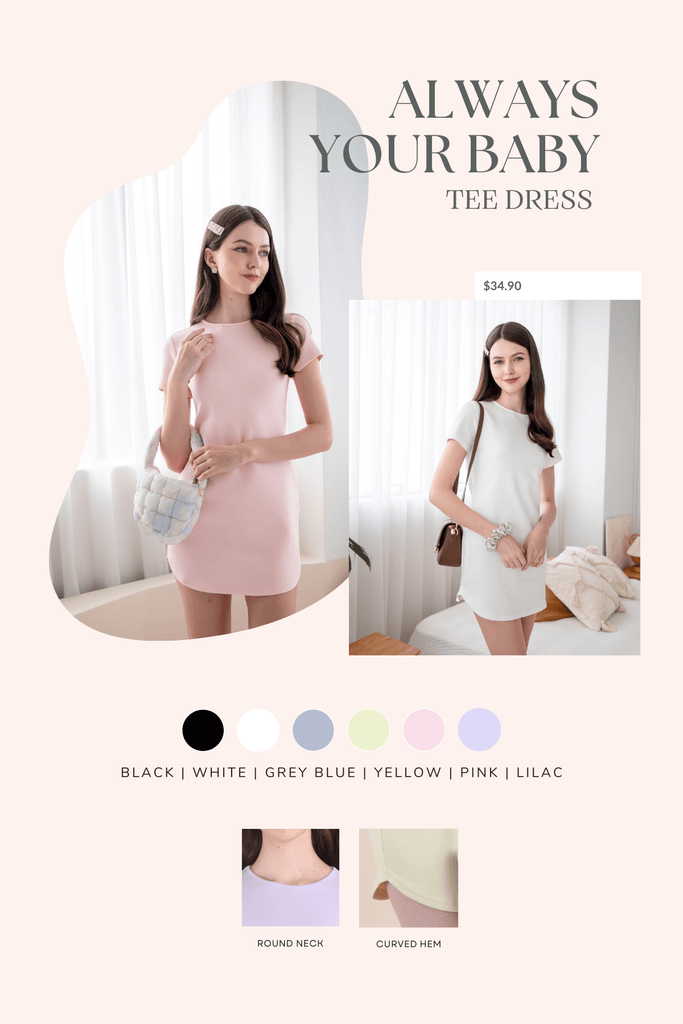 The ultimate sister of our beloved Kayce Baby Tee! This gem is your new basic essential— perfect for everyday wear. Similarly, Always Your Baby Tee Dress comes in the same six fabulous shades. It’s a wardrobe must-have that promises versatility and style. Whether running errands or catching up with friends, wear it on its own for an effortless chic vibe or switch up the look with your favourite outerwear ₊⊹