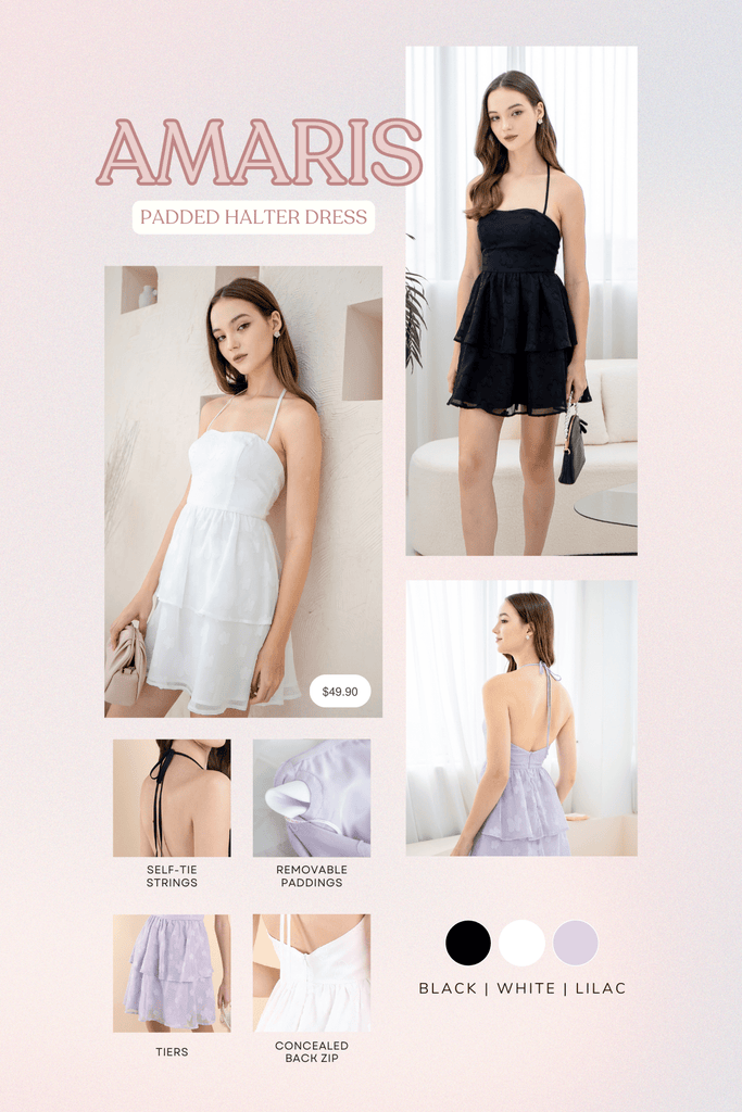 Amaris features a chic halter neckline that accentuates the shoulders and provides a flattering silhouette. Crafted with soft, padded fabric, it offers both comfort and a stylish fit, available in 3 colours. This versatile dress is perfect for various occasions, easily dressed up with accessories or kept casual for everyday wear.
