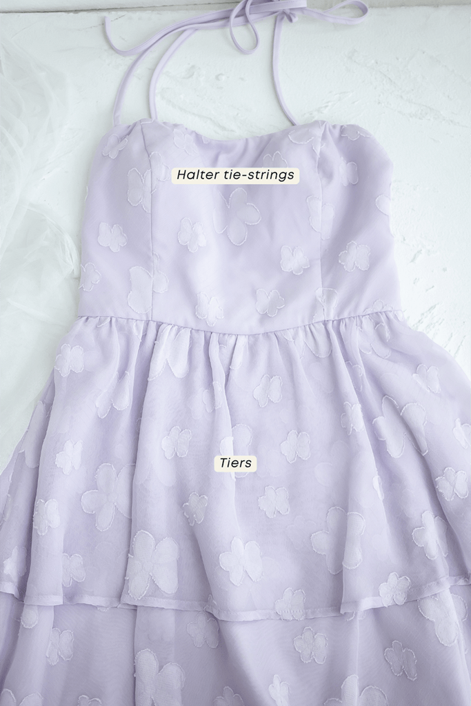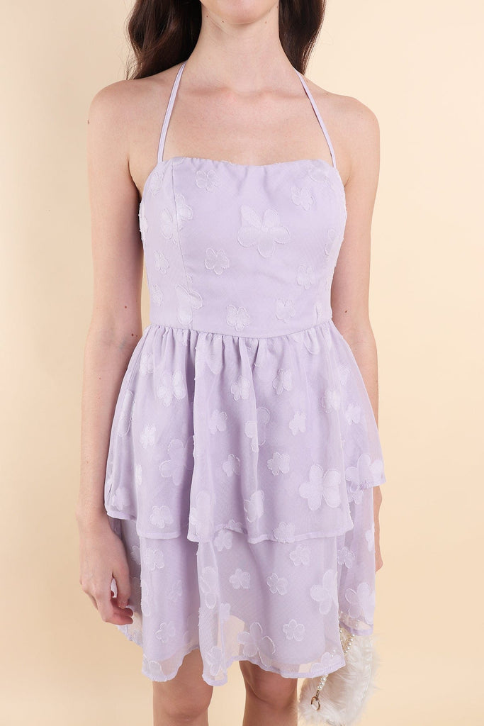 AMARIS PADDED HALTER DRESS IN LILAC