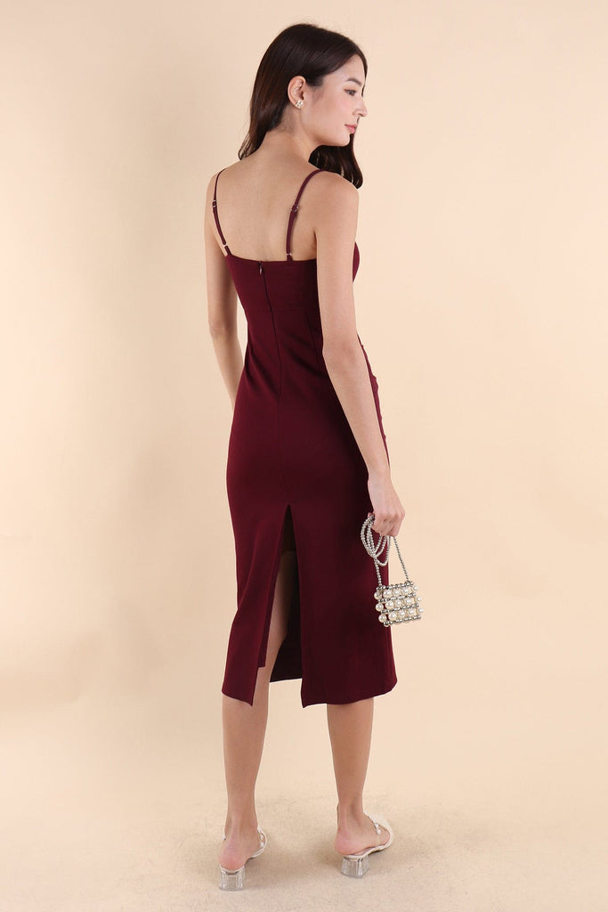 ASHWOOD PADDED BODYCON DRESS IN WINE