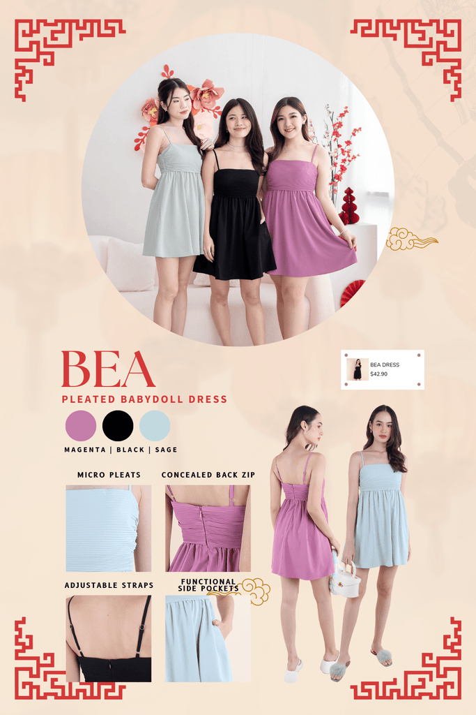 A babydoll dress that is not just adorable; it's a fashion essential that effortlessly elevates your style! Its pleated bodice gives the dress a subtle yet delightful detail, making it a go-to piece for any occasion where you want to feel fabulous! Consider Bea your elevated basic – versatile enough to be dressed up or down with your accessories, chic and charming enough to stand out