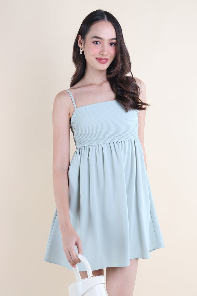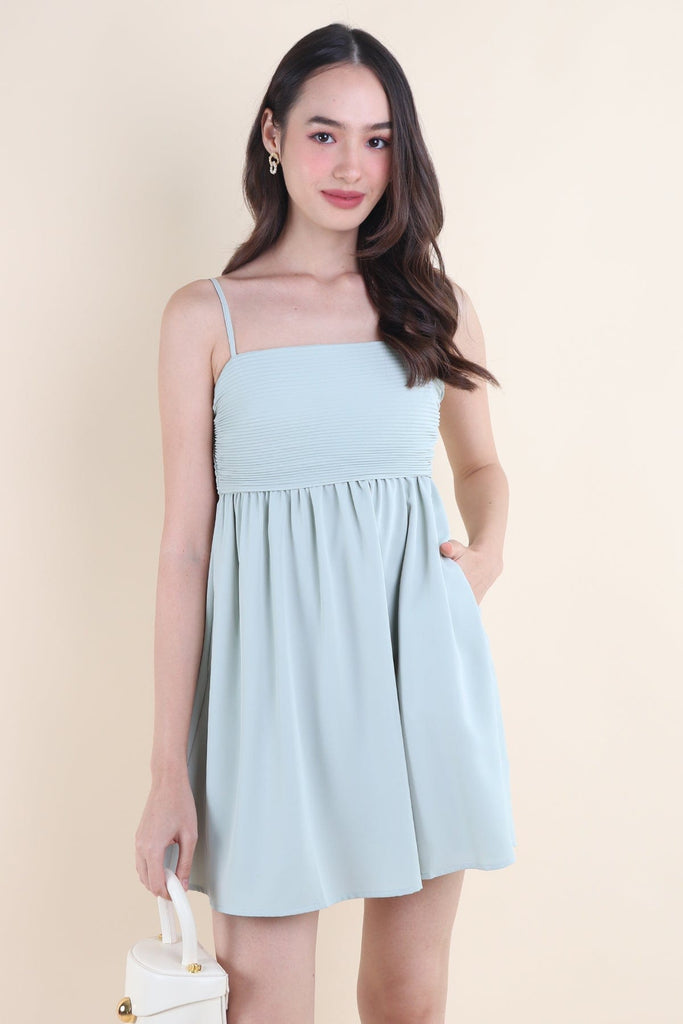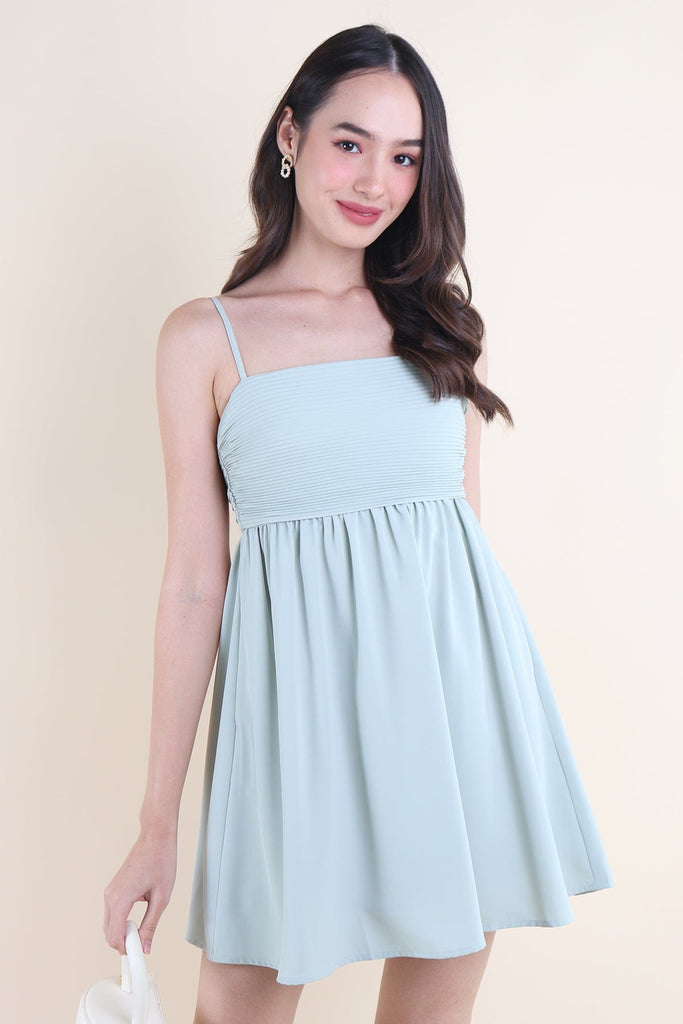 BEA PLEATED BABYDOLL DRESS IN SAGE