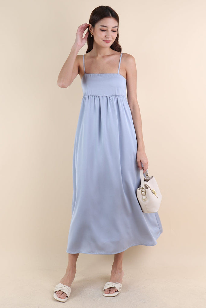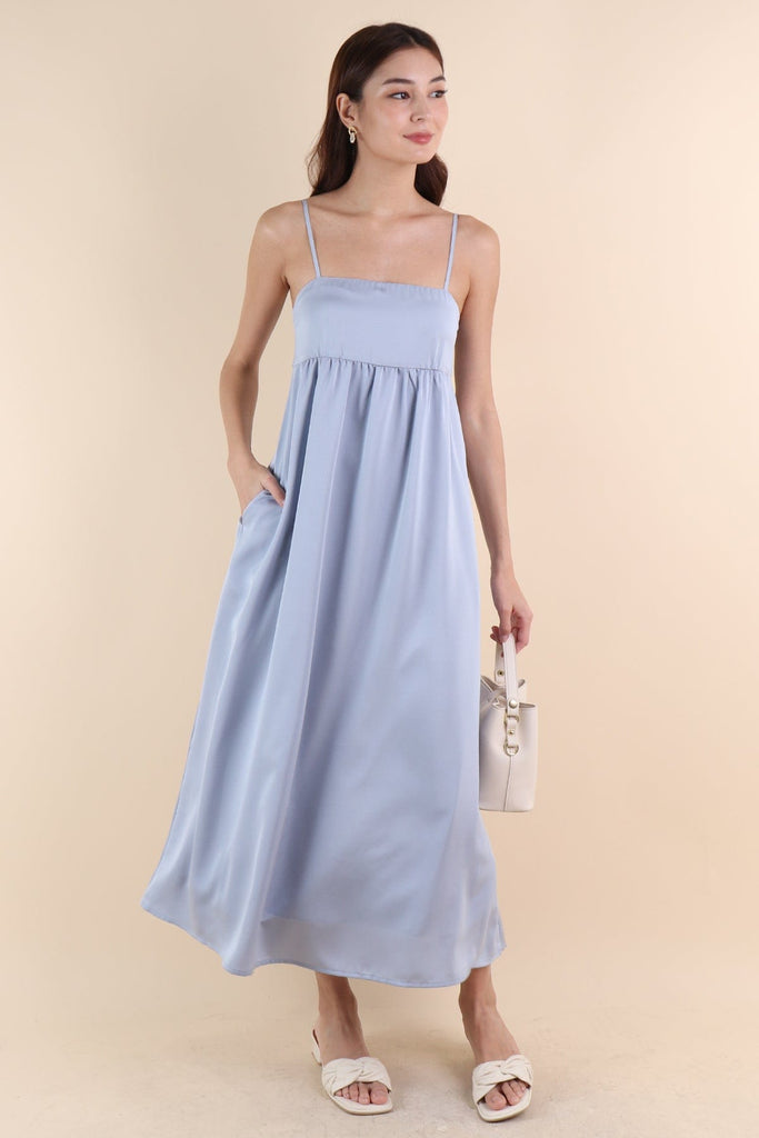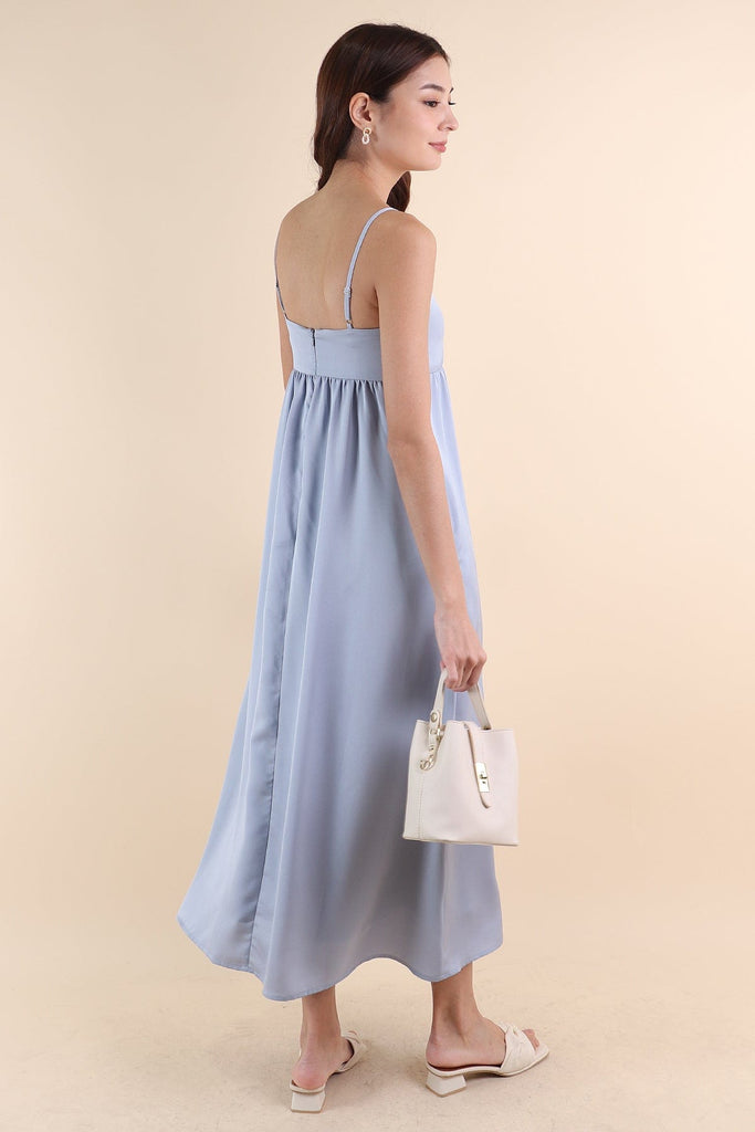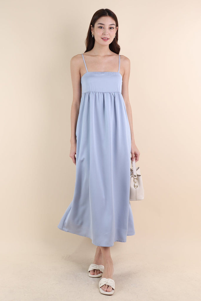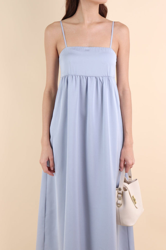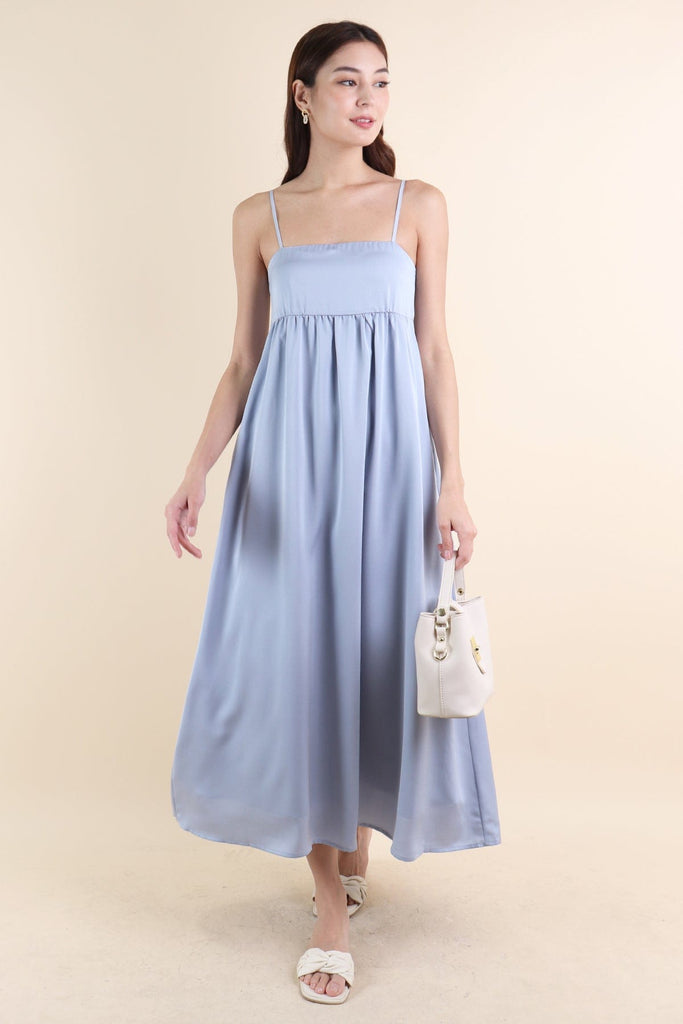 BELLA BABYDOLL SATIN MAXI DRESS IN SEA BLUE