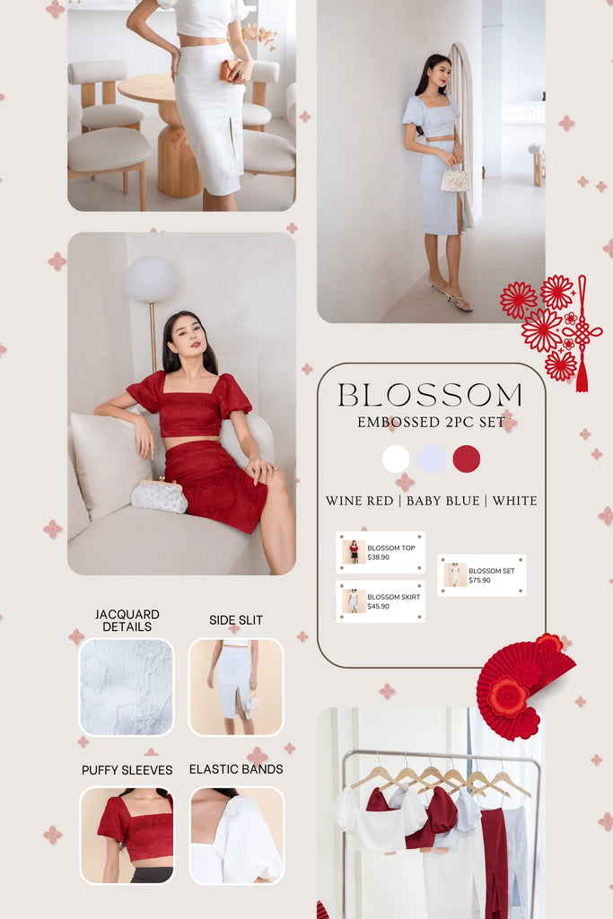 Coming in 3 beautiful colours, our Blossom top is embossed with jacquard details and features puffy sleeves. This top is sophisticated and flattering, perfect for ladies who love sleeved tops! Not just that, its squarish neckline will help flaunt your collar-bones effortlessly too!