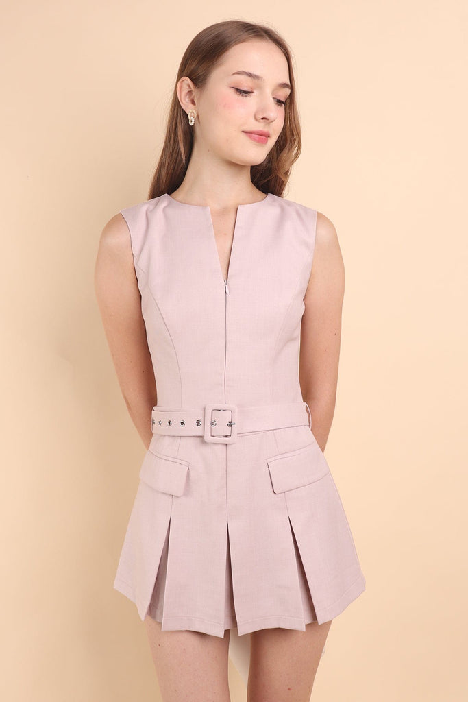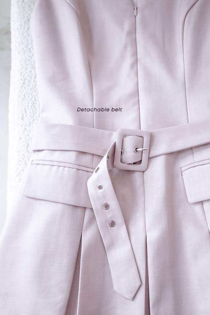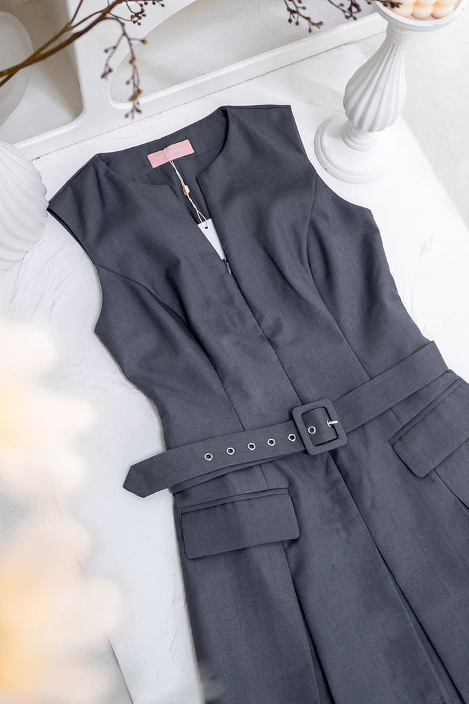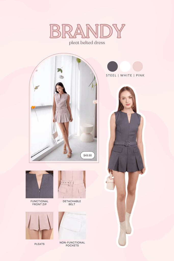 Brandy features elegant pleating! The detachable belt cinches the waist for a flattering silhouette. A stylish front zip adds a modern touch to the classic look. Ideal for both casual and formal occasions, this dress combines comfort with sophistication. Perfect for dressing up or down, it’s a versatile addition to any wardrobe.