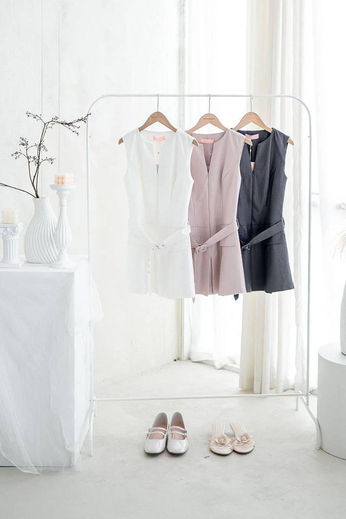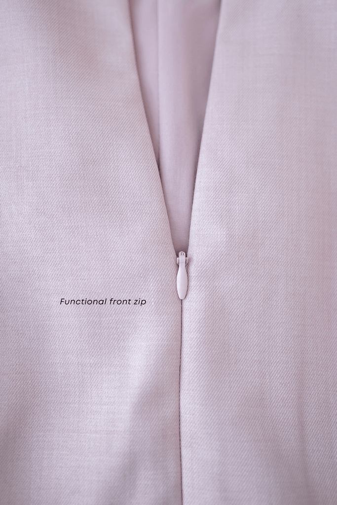 Brandy features elegant pleating! The detachable belt cinches the waist for a flattering silhouette. A stylish front zip adds a modern touch to the classic look. Ideal for both casual and formal occasions, this dress combines comfort with sophistication. Perfect for dressing up or down, it’s a versatile addition to any wardrobe.