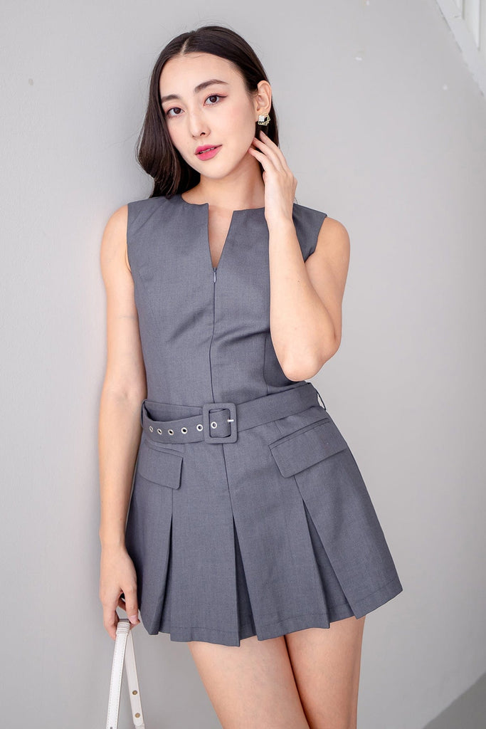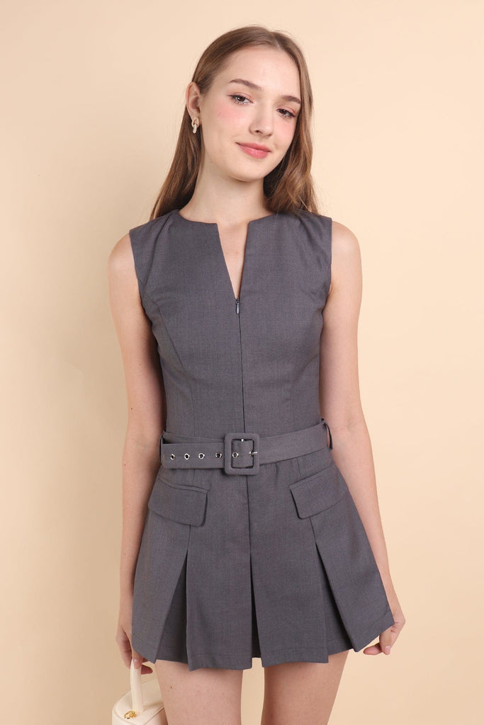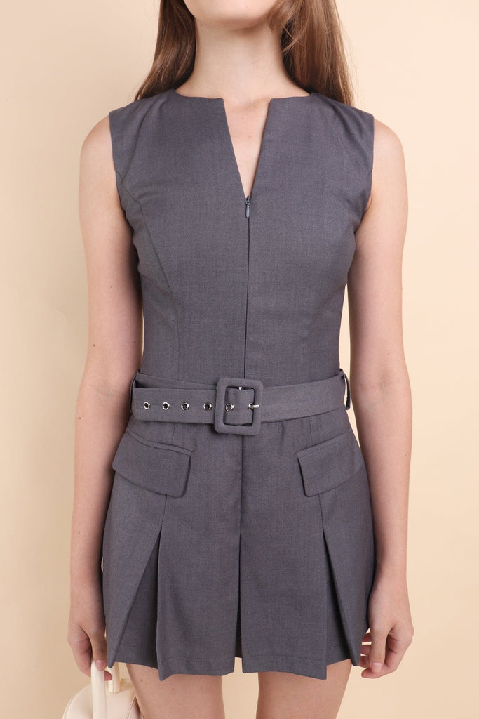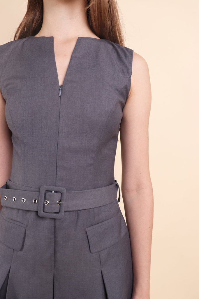 BRANDY PLEAT BELTED DRESS IN STEEL