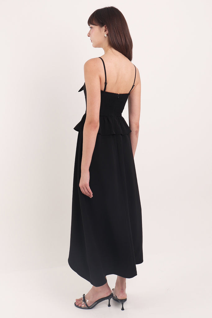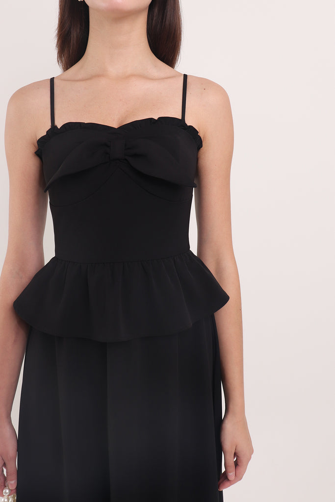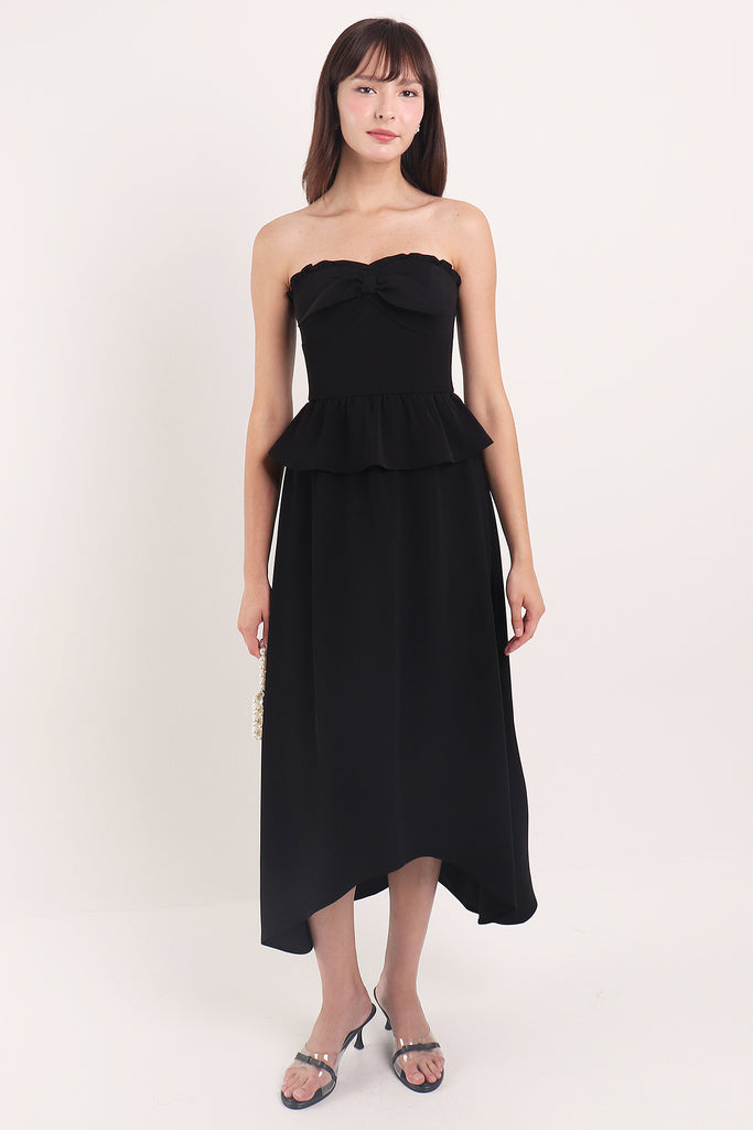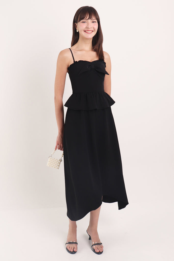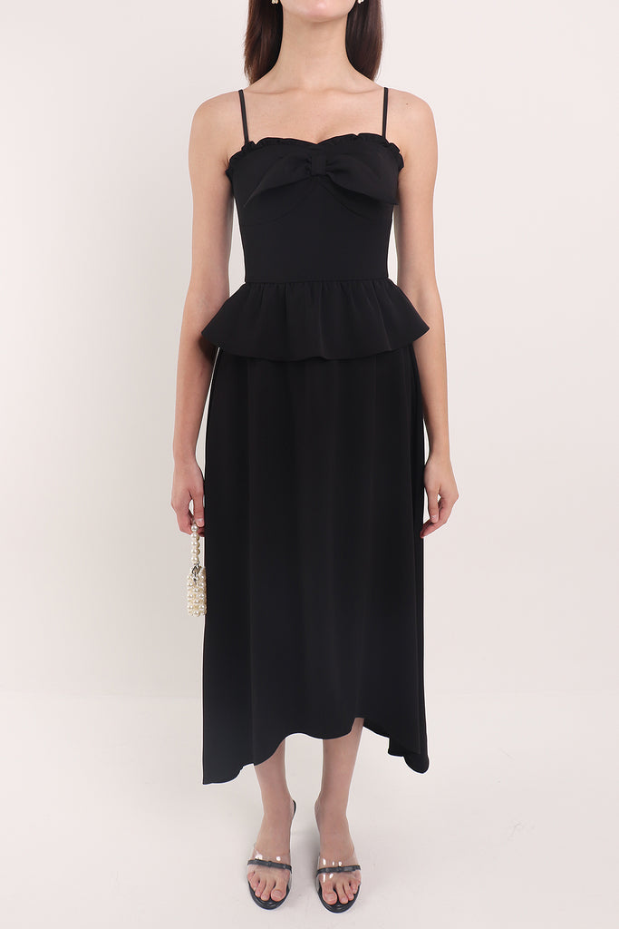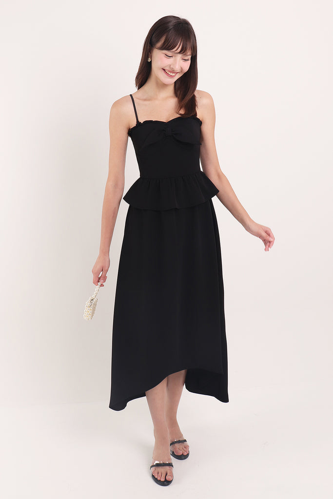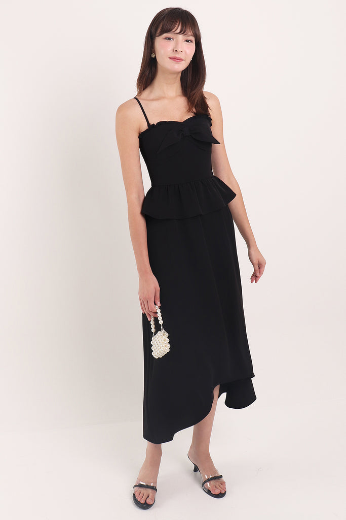 CALLO PADDED BOW HI-LOW DRESS IN BLACK
