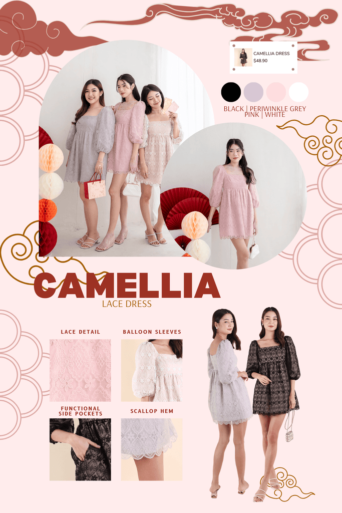 Lace love affair ♡ Camellia's delicate lace adds an elegant and feminine appeal, giving the dress a romantic aura, with a flattering neckline that accentuates your shoulders and collarbone for a chic look. Get ready to take center stage in this stunning dress that effortlessly combines sweetness and allure~