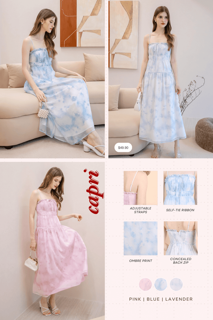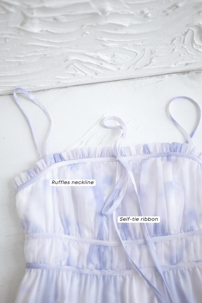 A perfect dress! With its soft gradient of pastel hues that evoke the beauty of a blooming garden. Its flowing silhouette gently drapes, creating a relaxed and airy feel ideal for warm, sunny days. Whether you're attending a garden party or strolling by the beach, this dress offers an effortlessly chic look for any occasion.