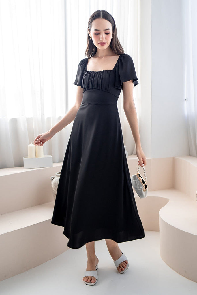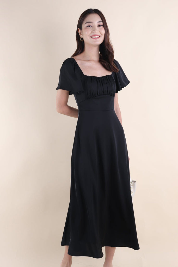 CARMELLIA FLUTTERS MAXI DRESS IN BLACK